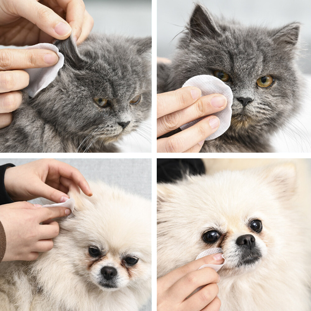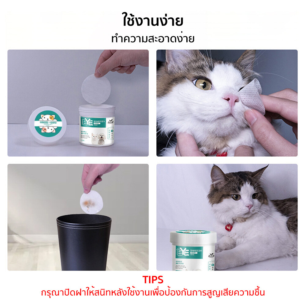 แผ่นเช็ดแมว แผ่นเช็ดตาสุนัขและแมว แผ่นเช็ดคราบน้ำตาสุนัขและแมว ผ้าเช็ดทำความสะอาดตา หู แบบอ่อนโยน สำหรับแมวและสุนัข