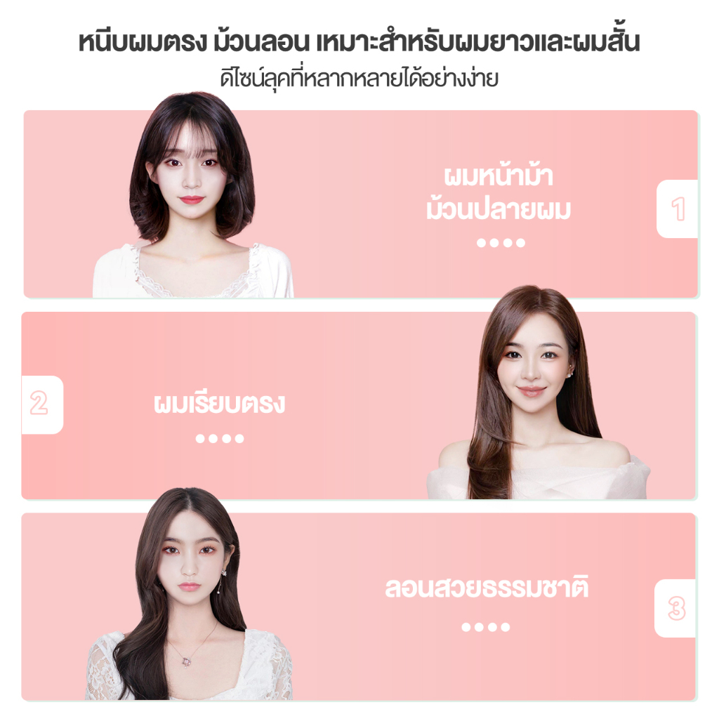 ... นผม มี 3 สี: ขาว , ชมพู , เขียว รูปทรงขนาดเล็กไม่กินพื้นที่ พกพาสะดวกในการเดินทาง ตัวเครื่องยาวเพียง 17 ซม. , ใส่กระเป๋าได้ ปรับอุณหภูมิ : 200 กำลังไฟ: 17 วัตต์ เกียร์: 1 เกียร์ วิธีทำความร้อน: PTC ขนาดแผ่นความร้อน: 65 มม. × 17 มม. วัสดุเปลือกหุ้ม: วัสดุ PP เป็นมิตรกับสิ่งแวดล้อม สายไฟ: 1 เมตร น้ำหนัก: 294 กรัม สี: ขาว , ชมพู , เขียว รายการบรรจุภัณฑ์: เครื่องหนีบผม * 1, ฝาครอบ * 1, กล่องเก็บ * 1