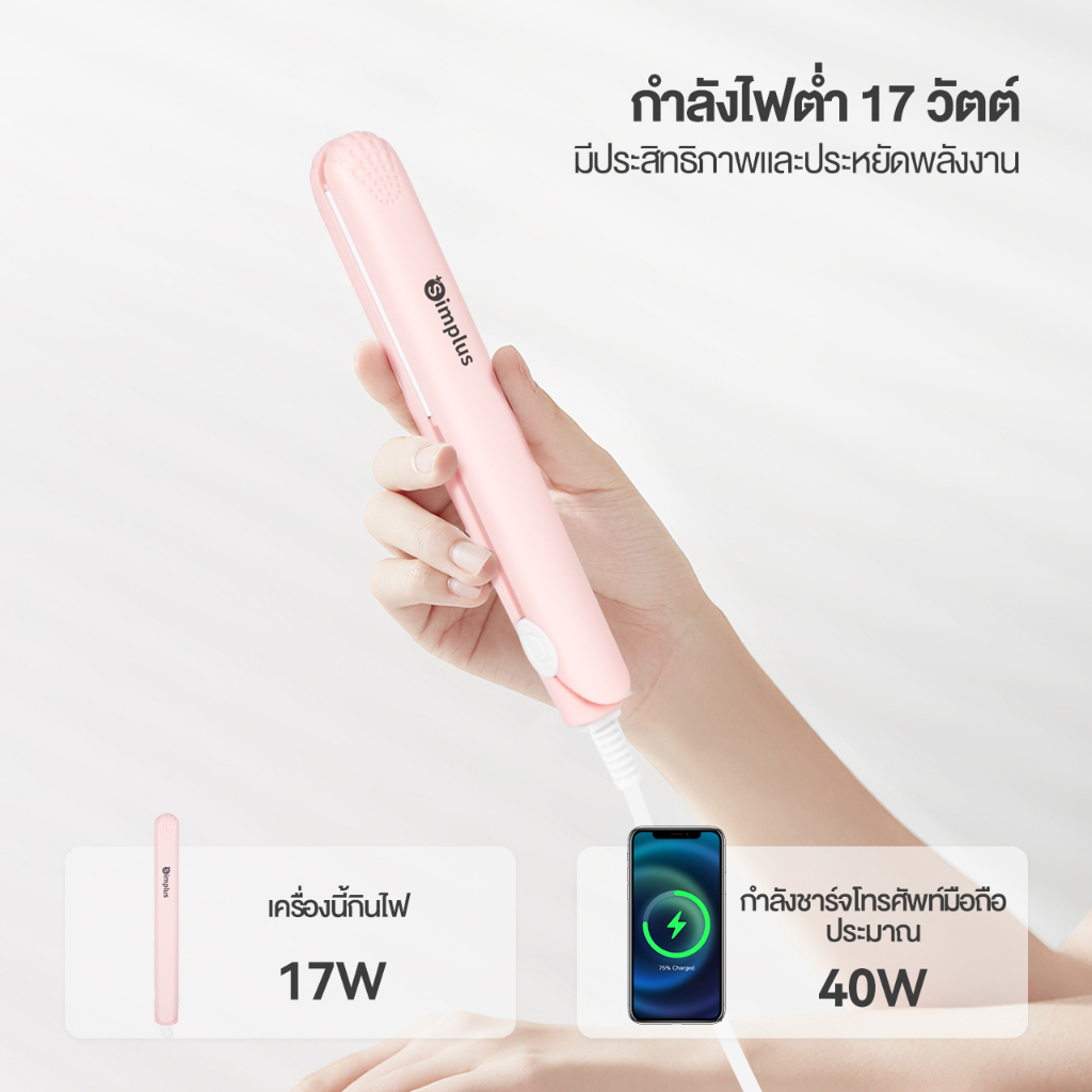 SimplusPink Mini เครื่องหนีบผม ขนาดเล็ก พกพาสะดวก ใช้งานได้ 2 แบบ ZFBA004