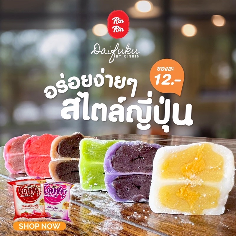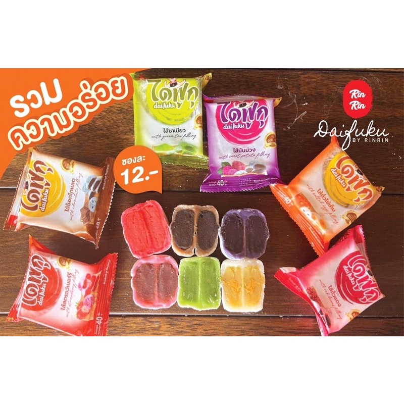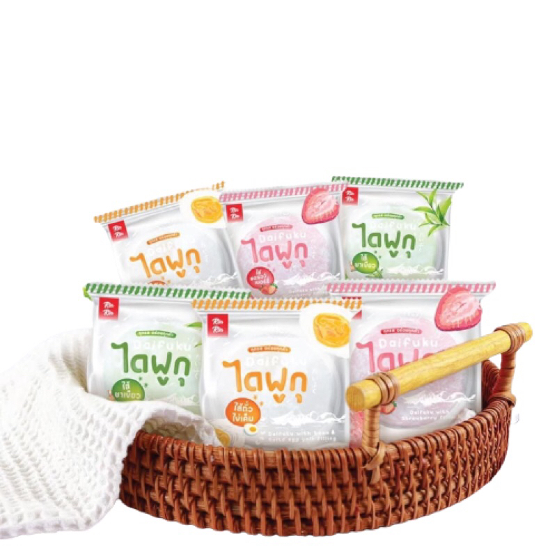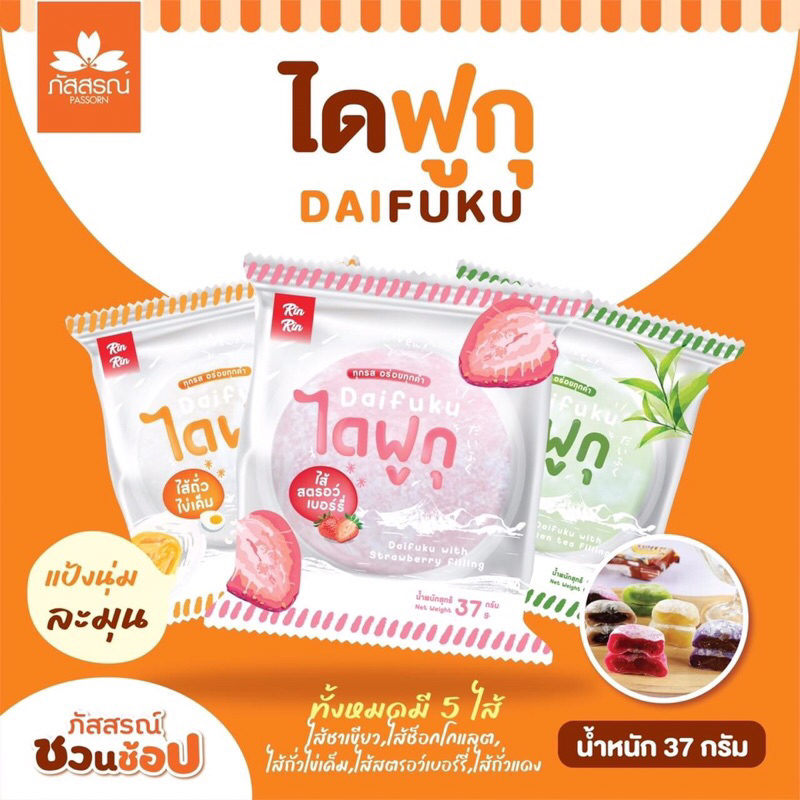 แป้งเหนียวนุ่ม หวานน้อย อร่อยสองเด้งในคำเดียว ยืดหน่อย อร่อยนะ ชิ้นใหญ่ จุใจ ใครบ้างไม่ชอบ ไดฟูกุ มีให้เลือก 5 รส ไส้ถั่วและไข่เค็ม ไส้สตรอว์เบอร์รี่ ไส้ช็อกโกแลต ไส้ชาเขียว ไส้มันม่วง บรรจุ 1 ชิ้น น้ำหนัก 37กรัม คละรสเป็นราคาโปร ทางร้านขออนุญาตคละสินค้านะคะ ลูกค้าจะไม่สามารถเลือ