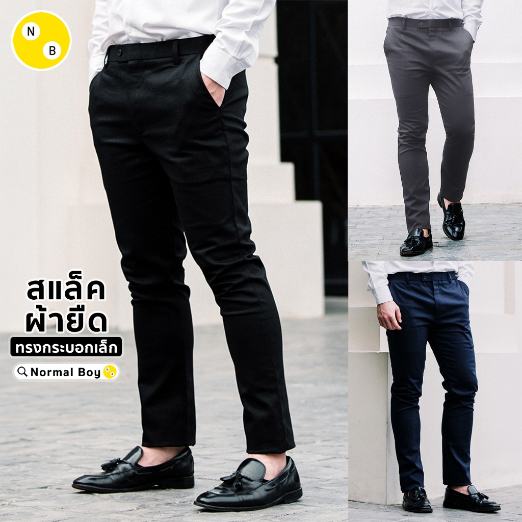 กางเกงขายาวสแล็คผู้ชาย ผ้าซาตินยืด ทรงกระบอกเล็ก (Slim-fit) by Normal Boy