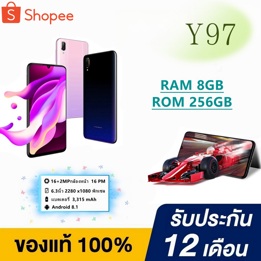 โทรศัพท์ Y97( แรม 8 รอม256) (ติดฟิล์มกระจกฟรี)หน้าจอ6.3 นิ้ว เอนดอย 8.1 พร้อมส่ง! ติดฟิล์มกระจกให้ฟรี รับประกัน 12 เดือน