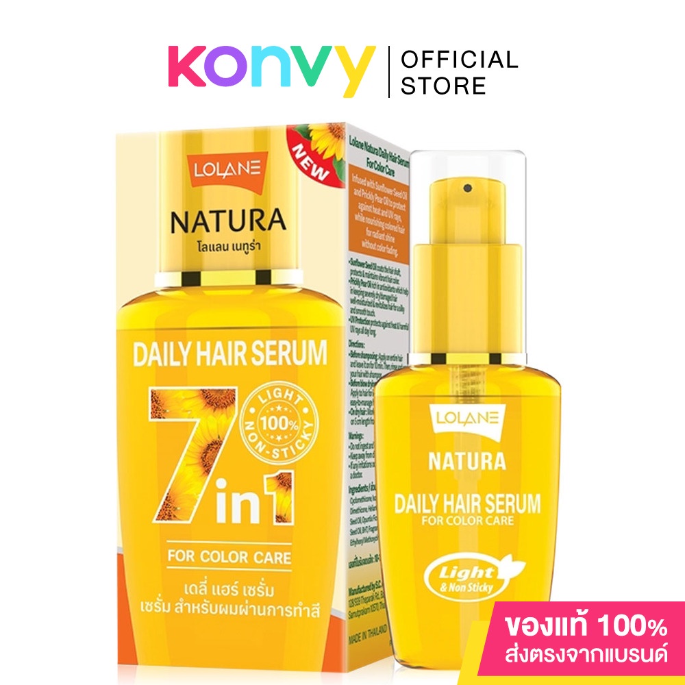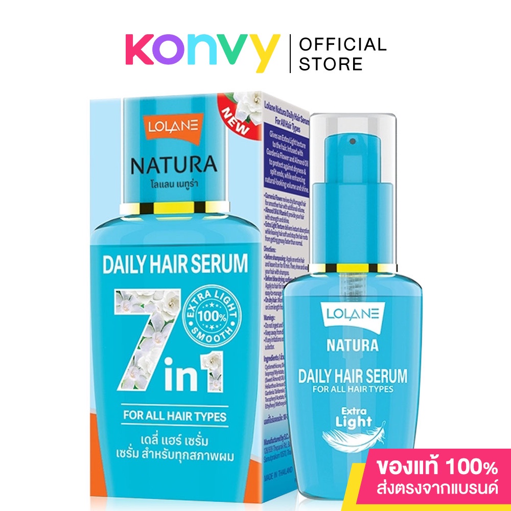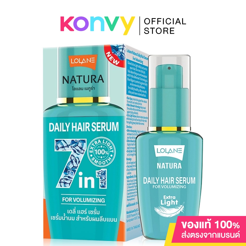 Cr. facebook.com/LolaneThailand •Lolane Natura Daily Hair Serum For Dry & Damaged Hair 50ml เซรั่มบำรุงผมเข้มข้นชนิดไม่ต้องล้างออก สูตรสำหรับฟื้นฟูผมเสีย เนื้อเซรั่มซึมซาบเร็ว ไม่เหนียวเหนอะหนะ เพื่อผมนุ่มสลวย เรียบลื่น เงางาม หวีง่าย ปกป้องผมจากมลภาวะและผมแตกปลาย 5 ซม. •Lolane Natura Daily