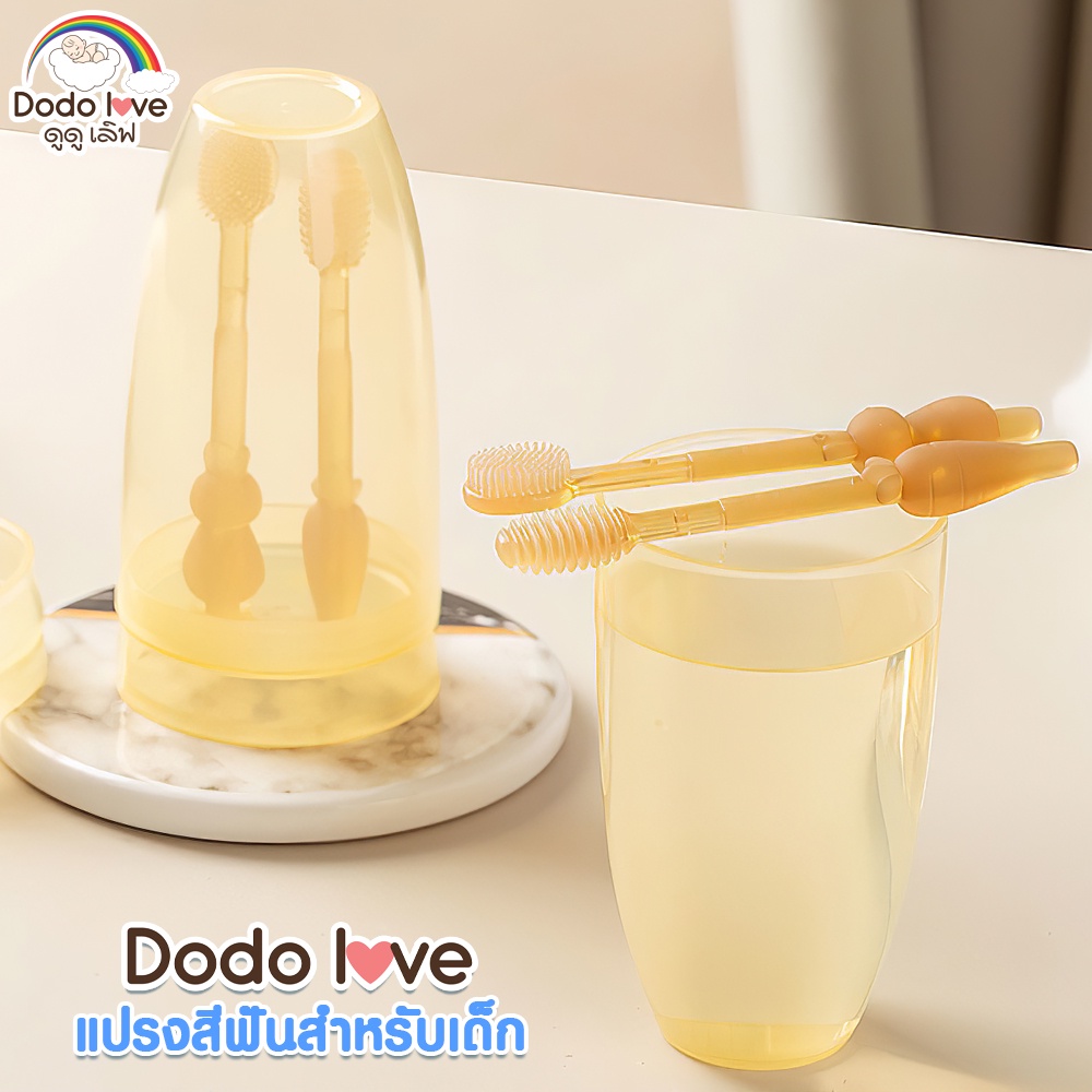 DODOLOVE ชุดแปรงสีฟันเด็ก 2 ชิ้น ซิลิโคน สําหรับเด็กทารก 0-18 เดือน ทําความสะอาดช่องปาก