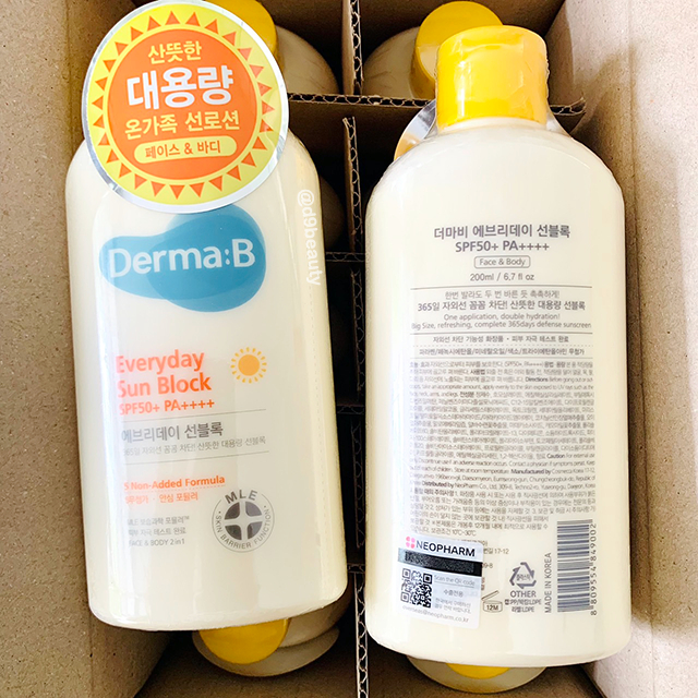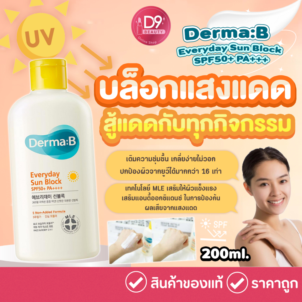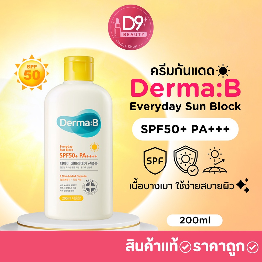 ครีมกันแดด Derma:B Everyday Sun Block SPF50+ PA+++ 200ml เนื้อบางเบา ใช้ง่ายสบายผิว