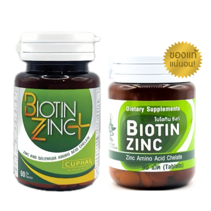 Biotin Zinc ไบโอทิน ซิงก์ 90 เม็ด ผลิตภัณฑ์เสริมอาหารบำรุงผม เล็บ ซิงก์อะมิโนคีเลตผสมไบโอทิน จากคณะเภสัช จุฬา ประโยชน์ของไบโอทิน 1. ป้องกันและรักษาโรคเกี่ยวกับเส้นผมและหนังศีรษะล้าน 2. ช่วยป้องกันผมหงอก 3 มีส่วนช่วยในการซ่อมแซมเซลล์ต่างๆ ของร่างกาย ส่วนสังกะสี เป็นธาตุที่เป็นส่วนประกอบ