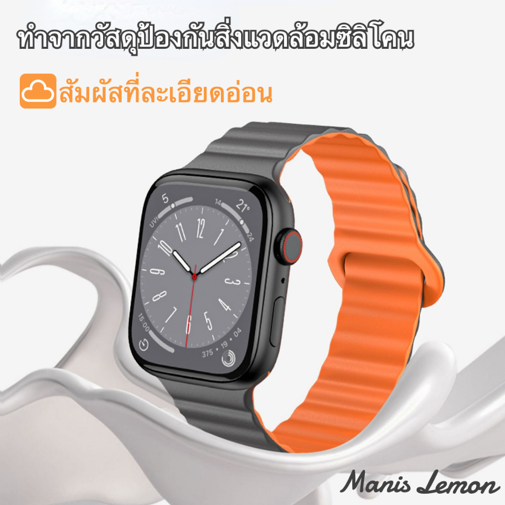 Manis Lemon สายนาฬิกาข้อมือ แม่เหล็ก for Smart Watch band Serie 10 9 8 3 5 4 SE 2 Ultra 49 46 45 44 40 41 38 42 mm มม. !!!รู้ก่อนซื้อ!!! 🤩 วัสดุสายรัดให้สัมผัสที่สบาย สวมใส่แล้วคุณจะชอบ สำหรับ Smart Watch 49 มม. (Ultra/Ultra2) สำหรับ Smart Watch 41 มม. (Series 7/8/9) สำหรับ Smar