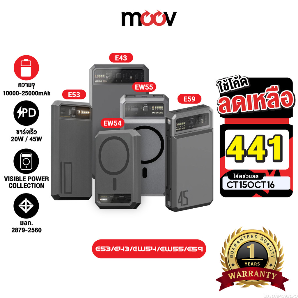 ... 0000mAh MagCharge Magnetic Wireless Power Bank ・ Orsen by Eloop EW55 PD 20W ความจุ 20000mAh MagCharge Magnetic Wireless Power Bank # ไฟแสดงสถานะ # ที่ตัวแบตเตอรี่สำรอง จะมีไฟ LED สีส้ม บอกสถานะการทำงานและระดับแบตเตอรี่ขณะใช้งานได้อีกด้วย ・ ไฟ LED 100 ติด - แบตเตอรี่อยู่ในระดับ 75% - 100% ・ ไฟ LED 75 ติด - แบตเตอรี่อยู่ในระดับ 50% - 75% ・ ไฟ LED 50 ติด - แบตเตอรี่อยู่ในระดับ 25% - 50% ・ ไฟ LED 25 ติด - แบตเตอรี่อยู่ในระดับ 0% - 25% ・ ไฟ LED Fast ติด - แสดงสถานะการชาร์จเร็วหรือ Fast Charging **ข้อควรแนะนำ** ใช้งานร่วมกับเคส MagCharge Magnetic เพื่อเพิ่มประสิทธิภาพในการยึดติด (เฉพาะ EW54/EW55) # คุณสมบัติสินค้า # ・ แบตเตอรี่สำรอง Visible Power Collection ・ สำหรับ Phone 12 / 13 / 14 / 15 สามารถใช้ MagCharge Magnetic โดยไม่ต้องใส่เคส (เฉพาะ EW54/EW55) ・ ระบบแม่เหล็กยึดแน่น ไม่หลุด พกพาได้สะดวกยิ่งขึ้น (เฉพาะ EW54/EW55) ・ รองรับชาร์จไร้สาย QI Wireless Charge สูงสุด 15W (เฉพาะ EW54/EW55) ・ จ่ายไฟ 7.5W Max สำหรับ Phone / 15W Max สำหรับ Android รุ่นที่รองรับ (เฉพาะ EW54/EW55) ・ รองรับชาร์จเร็ว PD QC 3.0 สูงสุด 20W (E53 / EW54 / EW55) , 45W (E43,E59) ・ E59 ดีไซน์ที่เก็บสายชาร์จอย่างลงตัว พร้อมฟังก์ชั่นแม่เหล็กที่สายชาร์จ ป้องกันสายชาร์จหล่นหาย ・ ออกแบบให้มีช่องว่าง สำหรับระบายความร้อนได้ดียิ่งขึ้น ・ Output Type-C สำหรับการชาร์จแบบใช้สาย กำลังไฟสูงสุด 45W (E43,E59) ・ มีไฟ LED แสดงสถานะการทำงานและปริมาณความจุของแบตเตอรี่สำรอง ・ ชาร์จเข้า Type C 20W และ 45W ในรุ่น E43,E59 ชาร์จตัวแบตสำรองได้รวดเร็วยิ่งขึ้น ・ ได้รับมาตรฐานสากล CE, FCC, RoHS, มอก. # ข้อมูลทางเทคนิค # ・ แบรนด์ : Orsen ・ รุ่น : EW54 ・ Input (Type-C) : 5V/2.4A 9V/2.22A ・ Output (Type-C) : 5V/3A 9V/2.22A 12V/1.67A ・ Wireless Charge : 5W / 7.5W / 10W / 15W MagCharge Magnetic ・ Total Output : 20W (Max) ・ ความจุแบตเตอรี่ : 10000 mAh ・ ชนิดแบตเตอรี่ : Li-Polymer ・ เวลาที่ใช้ชาร์จแบตสำรอง (Charging Time) : ประมาณ 3 ชั่วโมง # ข้อมูลทางเทคนิค # ・ แบรนด์ : Orsen ・ รุ่น : EW55 ・ Input (Type-C) : 5V/2.4A 9V/2.22A 2V/1.67A ・ Output (Type-C) : 5V/3A 9V/2.22A 12V/1.67A ・ Output (USB A 1/2) : 5V/3A 9V/2A 12V/1.5A ・ Wireless Charge : 5W / 7.5W / 10W / 15W MagCharge Magnetic ・ Total Output : 20W (Max) ・ ความจุแบตเตอรี่ : 20000 mAh ・ ชนิดแบตเตอรี่ : Li-Polymer ・ เวลาที่ใช้ชาร์จแบตสำรอง (Charging Time) : ประมาณ 5.5 ชั่วโมง # ข้อมูลทางเทคนิค # ・ แบรนด์ : Orsen ・ รุ่น : E53 ・ Input (Type-C) : DC 5V/3A 9V/2A 12V/1.67A ・ Output (Type-C) : DC 5V/2.4A 9V/2.22A 12V/1.67A ・ Output (USB-A) : DC 5V/3A 9V/2A 12V/1.5A ・ Total Output : 20W Max ・ ความจุแบตเตอรี่ : 10000 mAh ・ ชนิดแบตเตอรี่ : Li-Polymer ・ เวลาที่ใช้ชาร์จแบตสำรอง (Charging Time) : ประมาณ 3 ชั่วโมง ・ มีไฟสีส้ม แสดงสถานะ Quick Charge/Fast Charge # ข้อมูลทางเทคนิค # ・ แบรนด์ : Orsen ・ รุ่น : E43 ・ Input (Type-C1/2) : 5V/3A 9V/3A 12V/3A 15V/3A 20V/2.25A (45W Max) ・ Output (Type-C1/2) : 5V/3A 9V/3A 12V/3A 15V/2.66A 20V/2A (40W Max) ・ PPS : 3.3V-11V/4.05A 3.3V-16V/2.5A (45W Max) ・ Output (USB-A1/2) : 5V/3A 9V/2.67A 12V/2A (24W) ・ Total Output : 45W Max ・ ความจุแบตเตอรี่ : 25000 mAh / 92.5Wh ・ ชนิดแบตเตอรี่ : Li-Polymer ・ เวลาที่ใช้ชาร์จแบตสำรอง (Charging Time) : ประมาณ 3.5 ชั่วโมง # ข้อมูลทางเทคนิค # ・ แบรนด์ : Orsen ・ รุ่น : E59C / E59L ・ ประเภทสินค้า : แบตเตอรี่สำรอง ・ ชนิดแบตเตอรี่ : Li-Polymer ・ ความจุแบตเตอรี่ : 20000 mAh / 77Wh ・ PPS : 3.3-11V/3A 3.3-16V/2A ・ Input (Type-C1/2) : 5V/3A 9V/3A 12V/3A 15V/2.66A 20V/2.25A (45W Max) ・ Output (Type-C1/2) : 5V/3A 9V/3A 12V/3A 15V/2.66A 20V/2A (40W Max) ・ PPS : 3.3V-11V/4.05A 3.3V-16V/2.5