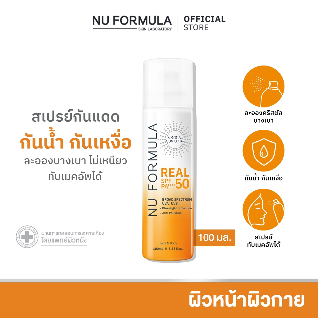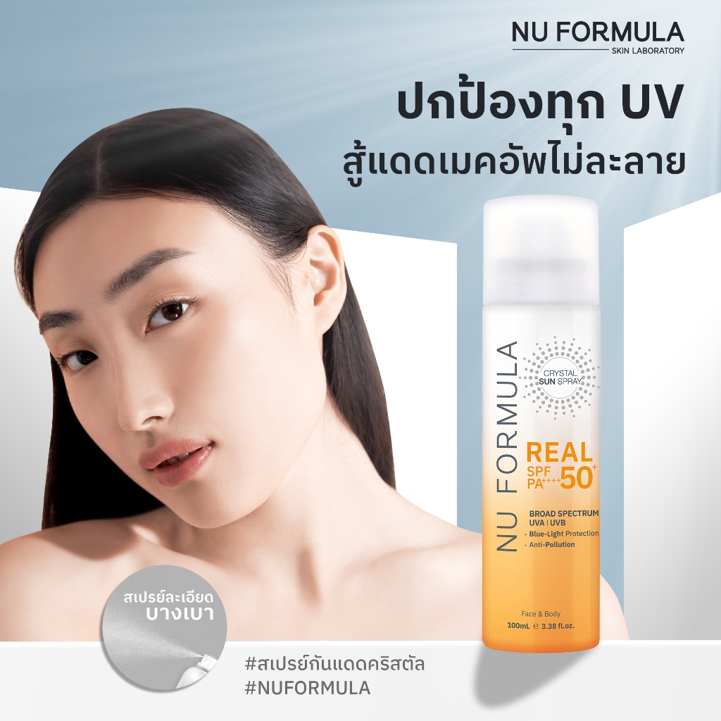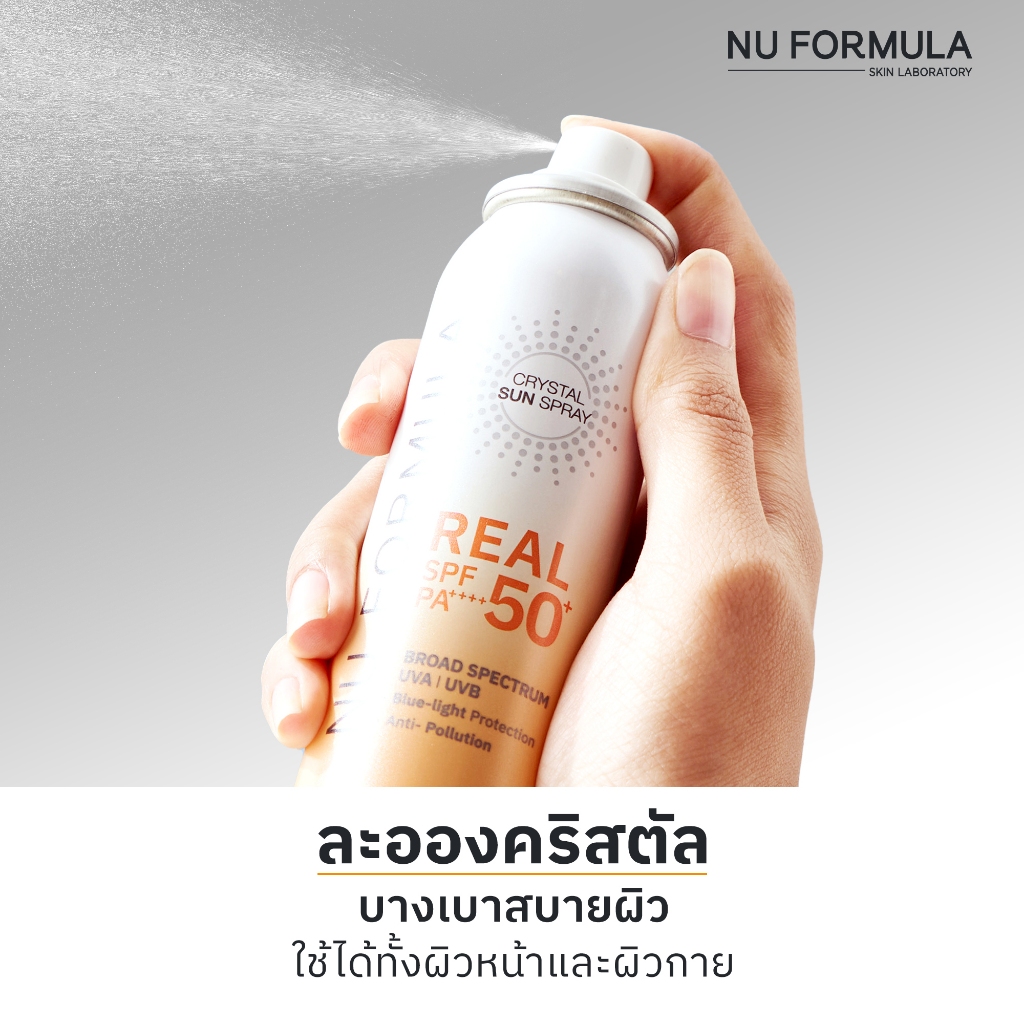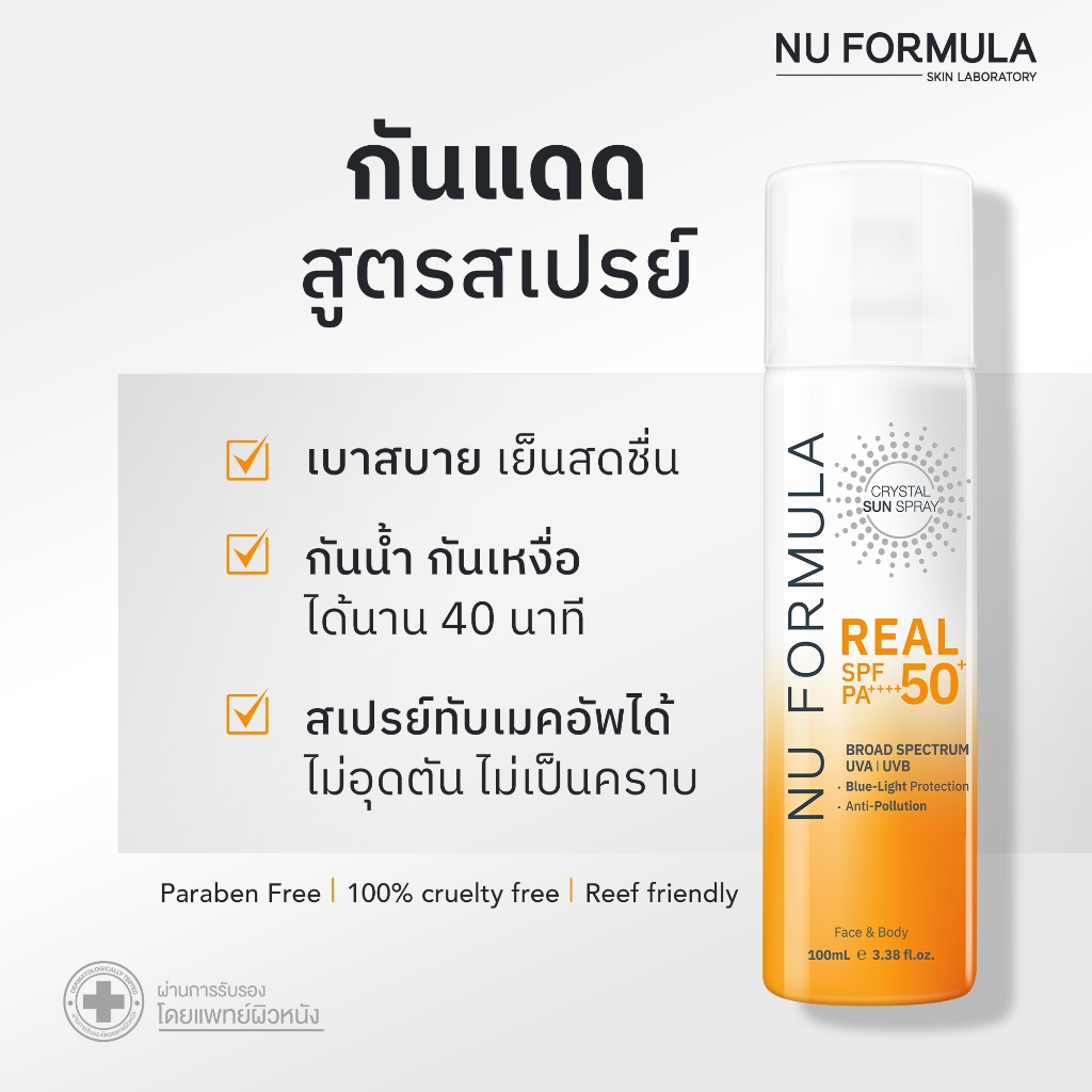 Nu Formula Crystal Sun Spray Real SPF50+ PA++++ สเปรย์กันแดด นู ฟอร์มูล่า ละอองบางเบา ฉีดทับเมคอัพได้