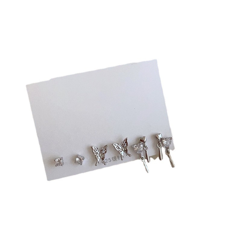 IFYOU ชุดต่างหูสตั๊ด รูปผีเสื้อ ประดับคริสตัล สีเงิน เครื่องประดับ สําหรับผู้หญิง 3 คู่ ต่อชุด