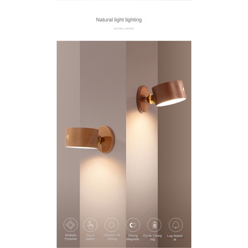 โคมไฟข้างเตียงไม้โคมไฟติดผนังห้องอ่าน USB อ่าน LED ระเบียง Correns
