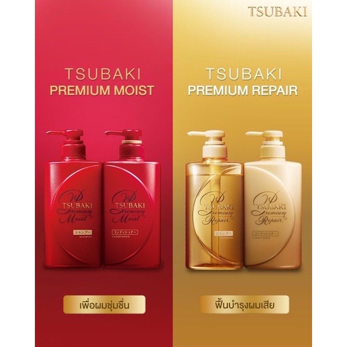 ฉลากไทย TSUBAKI by Shiseido ซึบากิ พรีเมียม Moist Repair Premium Shampoo Conditioner Treatment แชมพู ครีมนวด ทรีตเมนท์ รีแพร์ แชมพู ครีมนวด ขวดสีทอง สำหรับผมเสียที่ต้องการฟื้นบำรุง Tsubaki Premium Repair Shampoo ซึบากิ พรีเมี่ยม แชมพู รีแพร์ Tsubaki Premium Repair Conditioner ซึบากิ พรีเมี่ย