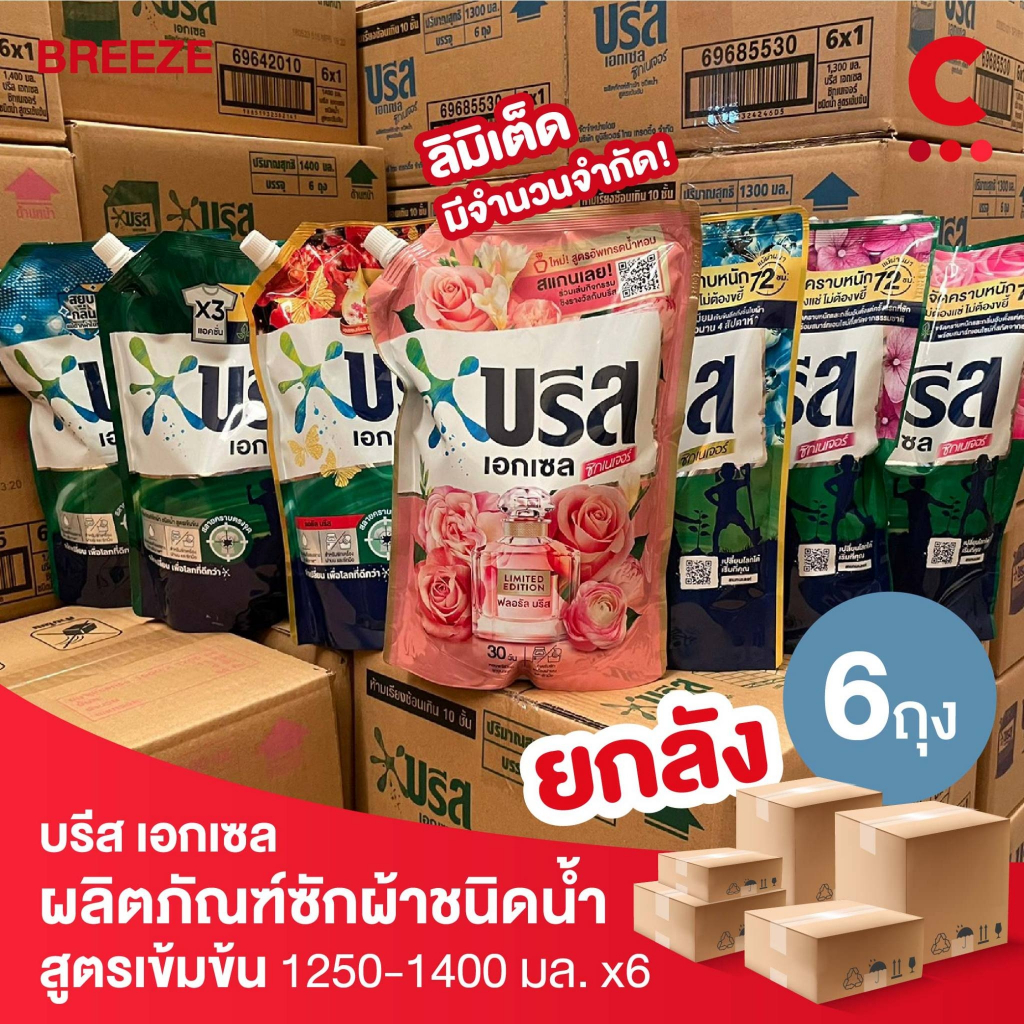 (ยกลัง 6 ถุงราคาส่ง!) บรีส เอกเซล ผลิตภัณฑ์ซักผ้าชนิดน้ำ ขนาด 1300- 1500มล. (เลือกสูตรได้)