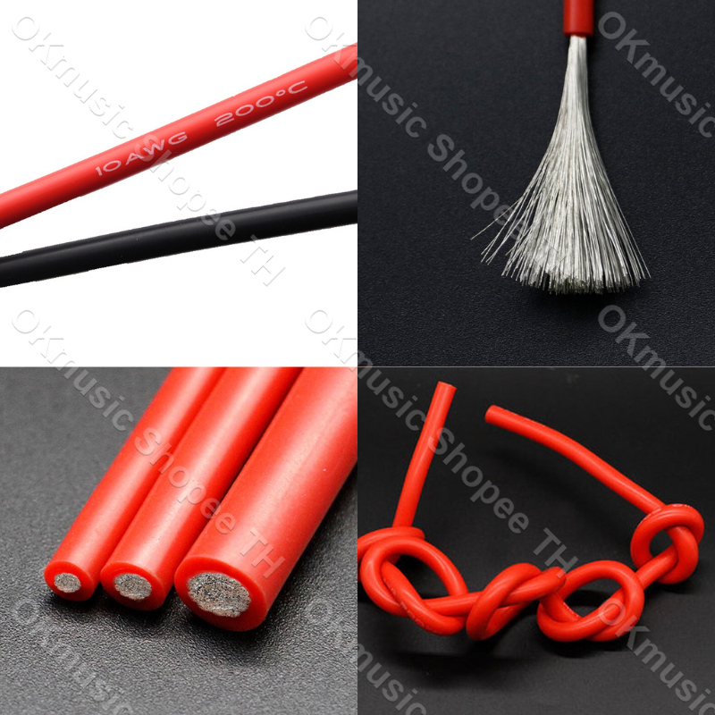 ... ายมีความยืดหยุ่นสูง ไม่แข็งเหมือนสาย PVC ทั่วไป ทองแดงแน่นๆ ในสาย ตัวนำไฟฟ้าทำจากทองแดงชุบดีบุกหรือที่ในอุตสาหกรรมเรียกว่า "Tinned copper" คงทนและนำไฟฟ้าได้ดี เหมาะสำหรับงานอิเล็กทรอนิคเช่น งานประกอบแบต งานระบบโซลล่าเซลล์ภายใน งานมอเตอร์ไซต์ไฟฟ้าและสายไฟรถยนต์ งานของเล่น RC เครื่องบิน โดรน และงาน DIY อื่นๆ ทุกประเภท ● สายนี้เป็นยี่ห้อเดียวกันกับที่โรงงานผลิตแบต Li-Po อันดับหนึ่งในจีนเลือกใช้ คุณภาพสูงกว่ายี่ห้อใกล้เคียง ทางร้าน Rocket lab คัดคุณภาพสายไฟด้วยตัวเองจากการโรงงานที่มีคุณภาพสูงในการผลิตสายไฟซิลิโคนในประเทศจีน รับประกันคุณภาพครับ! สายไฟ Silocone Rubber สีแดง และ สีดำ ขนาด 8AWG 10AWG 12AWG 14AWG 16AWG 18AWG 20AWG สายไฟแบต สายไฟรถยนต์ สายไฟ DC สายไฟทนความร้อนสูงมากกกกก 8 AWG ขนาดสาย OD 6.3 mm รองรับกระแสไฟ 190 A 10 AWG ขนาดสาย OD 5.5 mm รองรับกระแสไฟ 140 A 12 AWG ขนาดสาย OD 4.5 mm รองรับกระแสไฟ 88 A 14 AWG ขนาดสาย OD 3.5 mm รองรับกระแสไฟ 55 A 16 AWG ขนาดสาย OD 3.0 mm รองรับกระแสไฟ 35 A 18 AWG ขนาดสาย OD 2.3 mm รองรับกระแสไฟ 22 A 20 AWG ขนาดสาย OD 1.8 mm รองรับกระแสไฟ 13 A