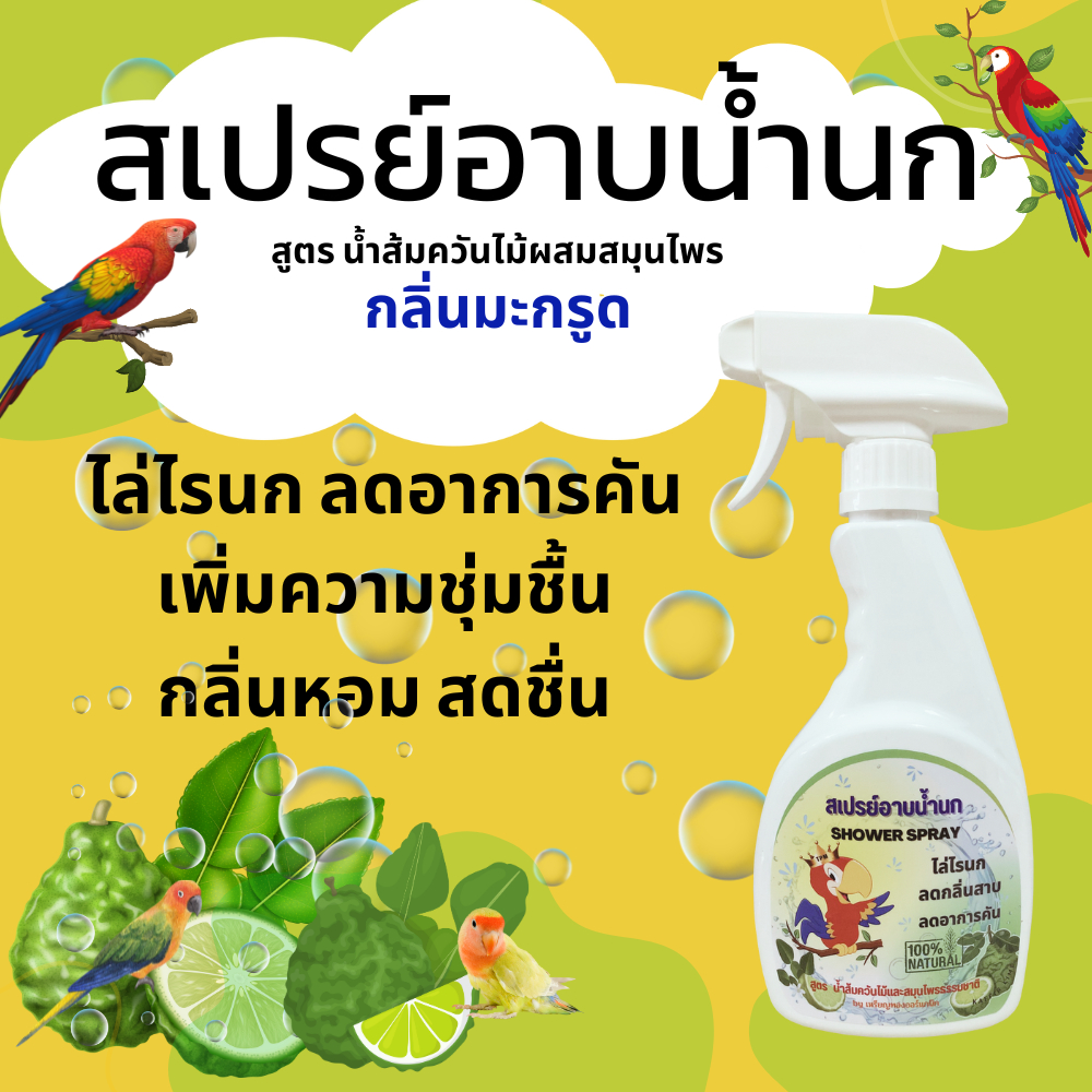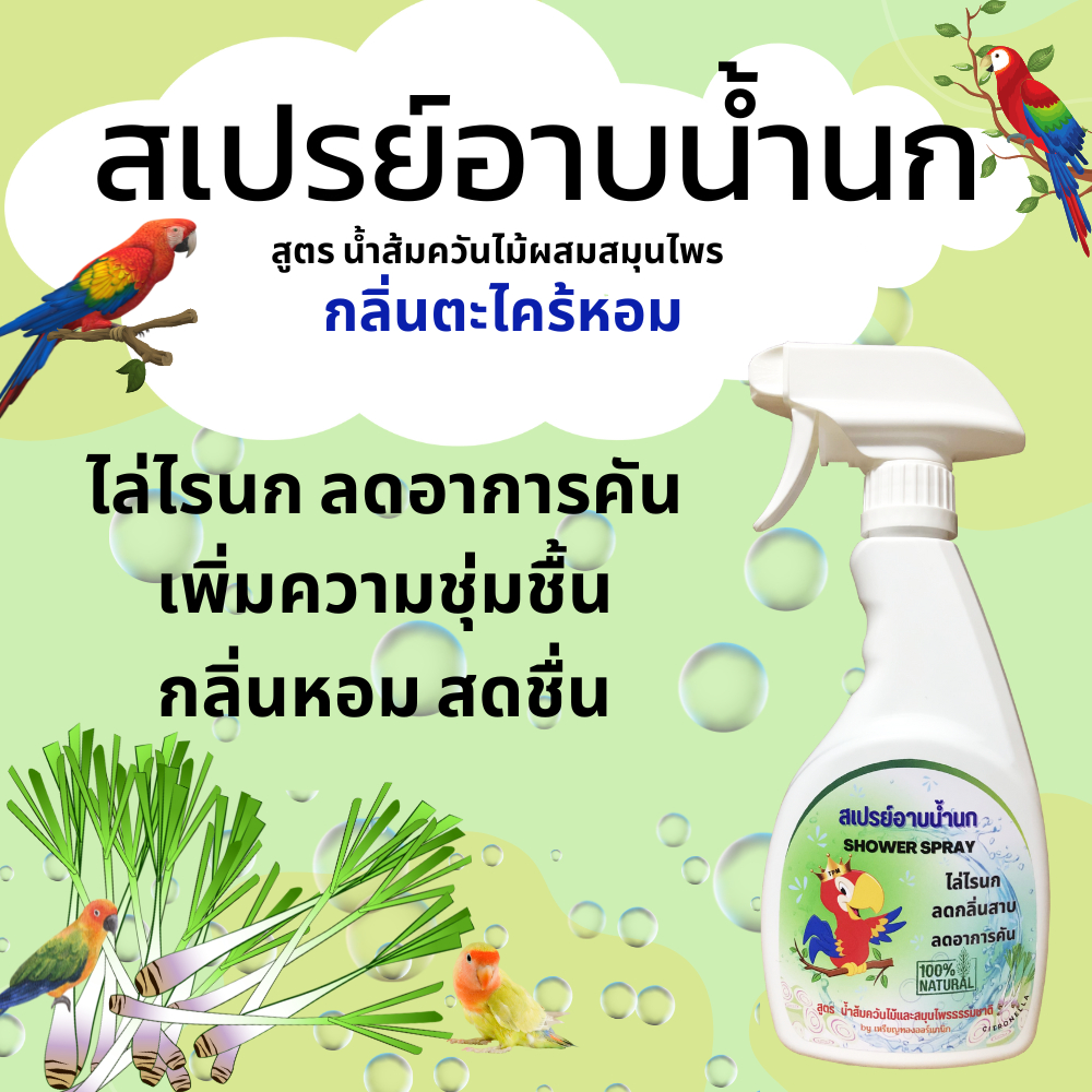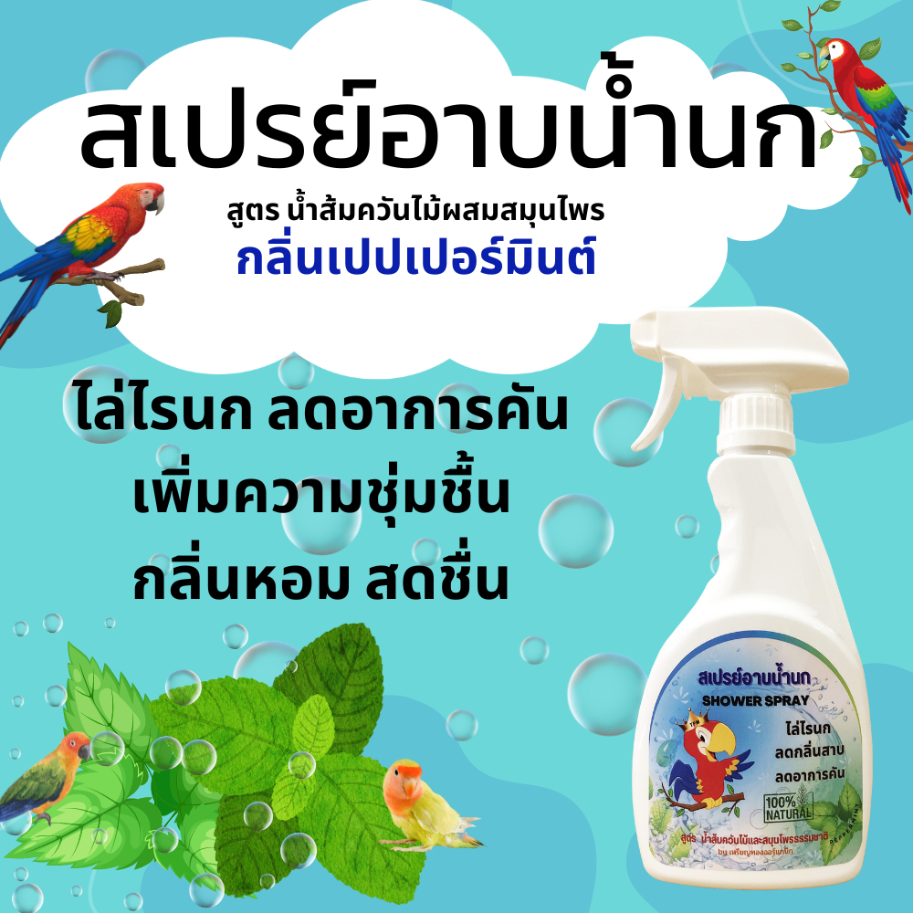 สเปรย์อาบน้ำนก ไล่ไรนก แก้อาการคัน ดับกลิ่นตัว เพิ่มความสดชื่น