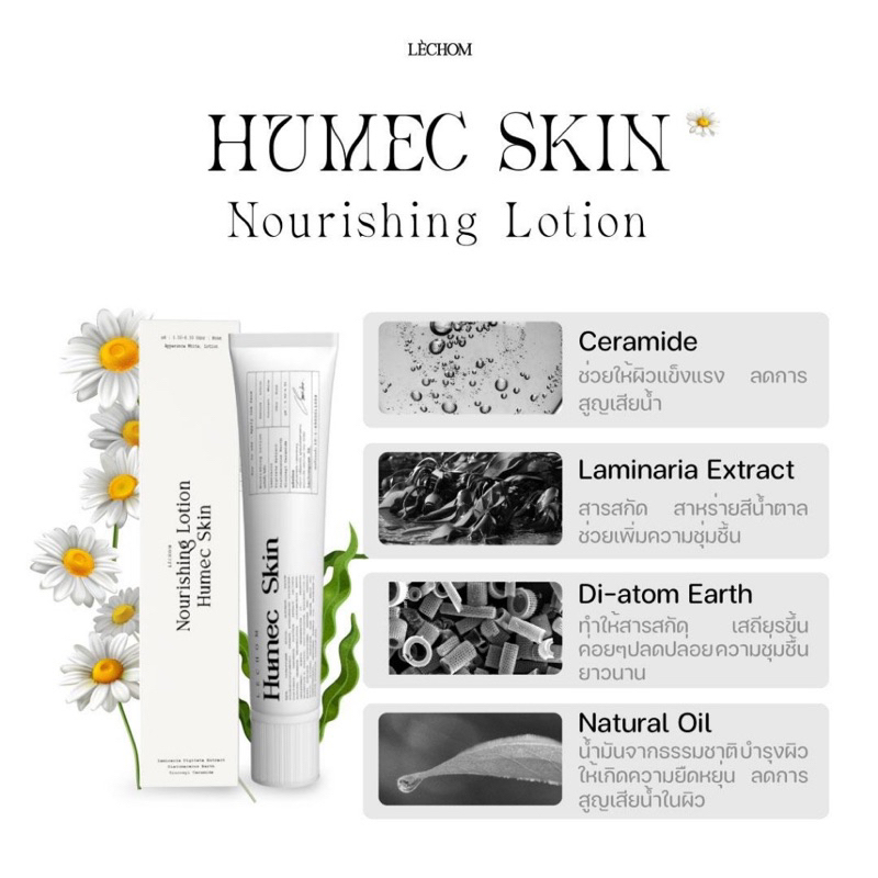 ม้อยเจอร์ไรเซอร์ Humec Skin หมายเลขใบอนุญาต/อย. 10-1-6500011059 เหมาะสำหรับผู้ที่มีปัญหาสิว ผิวแพ้ง่าย ติดสารมาหนักๆ ต้องการฟื้นฟูสภาพผิว เสริมเกาะป้องกันชั้นผิว (skin barrier) ให้กลับมาแข็งแรง สิวลดลง สภาพผิวดีขึ้นไว ผิวไม่โทรม เน้นบำรุงฟื้นฟูผิวให้ชุ่มชื้น ยาวนาน 24 ชม. ช่วยให้ผิวแข็ง