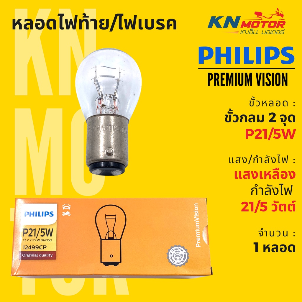 ✅แท้ 100%✅ หลอดไฟท้าย/ไฟเบรค ฟิลิปส์ Philips P21/5W (BAY15d) ขั้วกลม 2 จุด 21/5W แสงเหลือง สว่างกว่าหลอดเดิม 30%