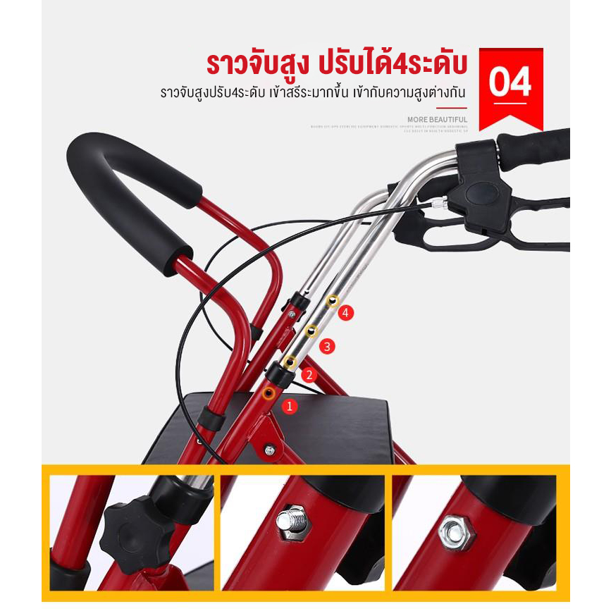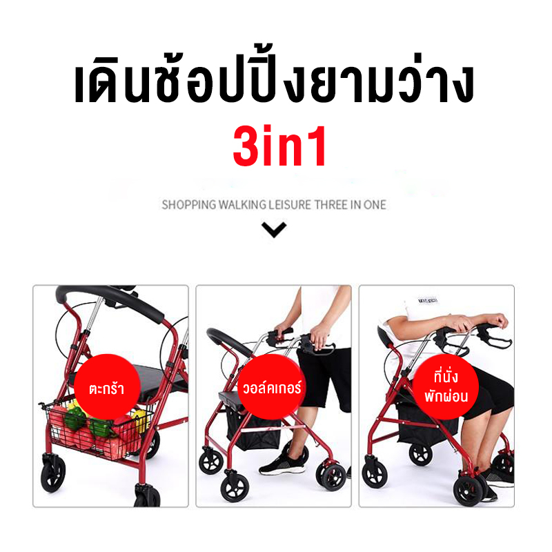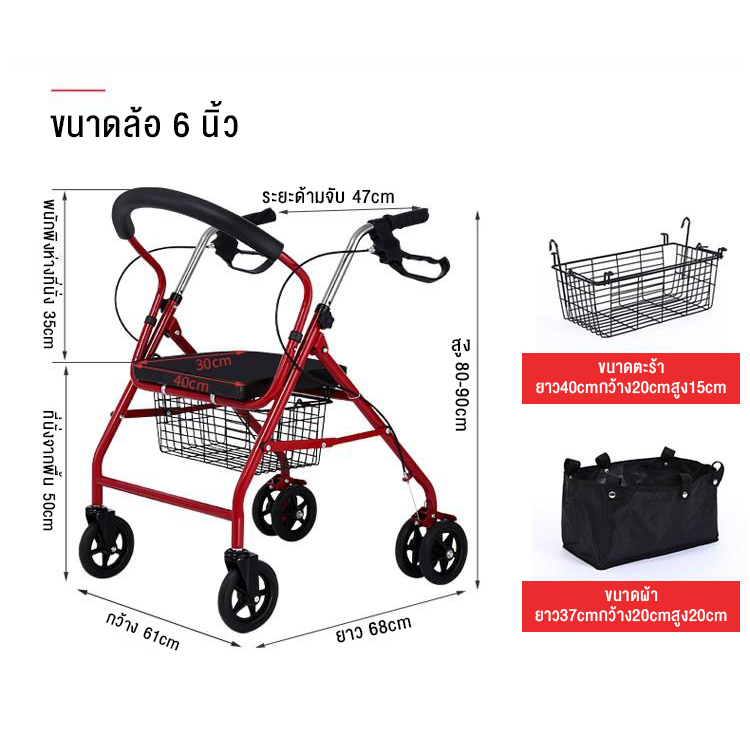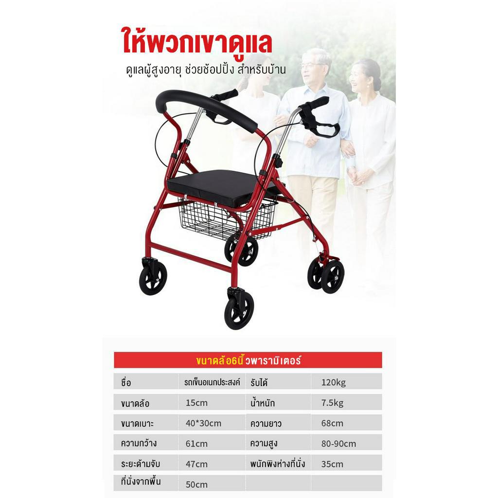Rollator รถเข็นผู้ป่วยหัดเดิน พับเก็บได้มี6ล้อและที่พักเท้า รถเข็นช่วยเดิน walker รถเข็นผู้สูงอายุ รถเข็นสำหรับผู้สูงอาย