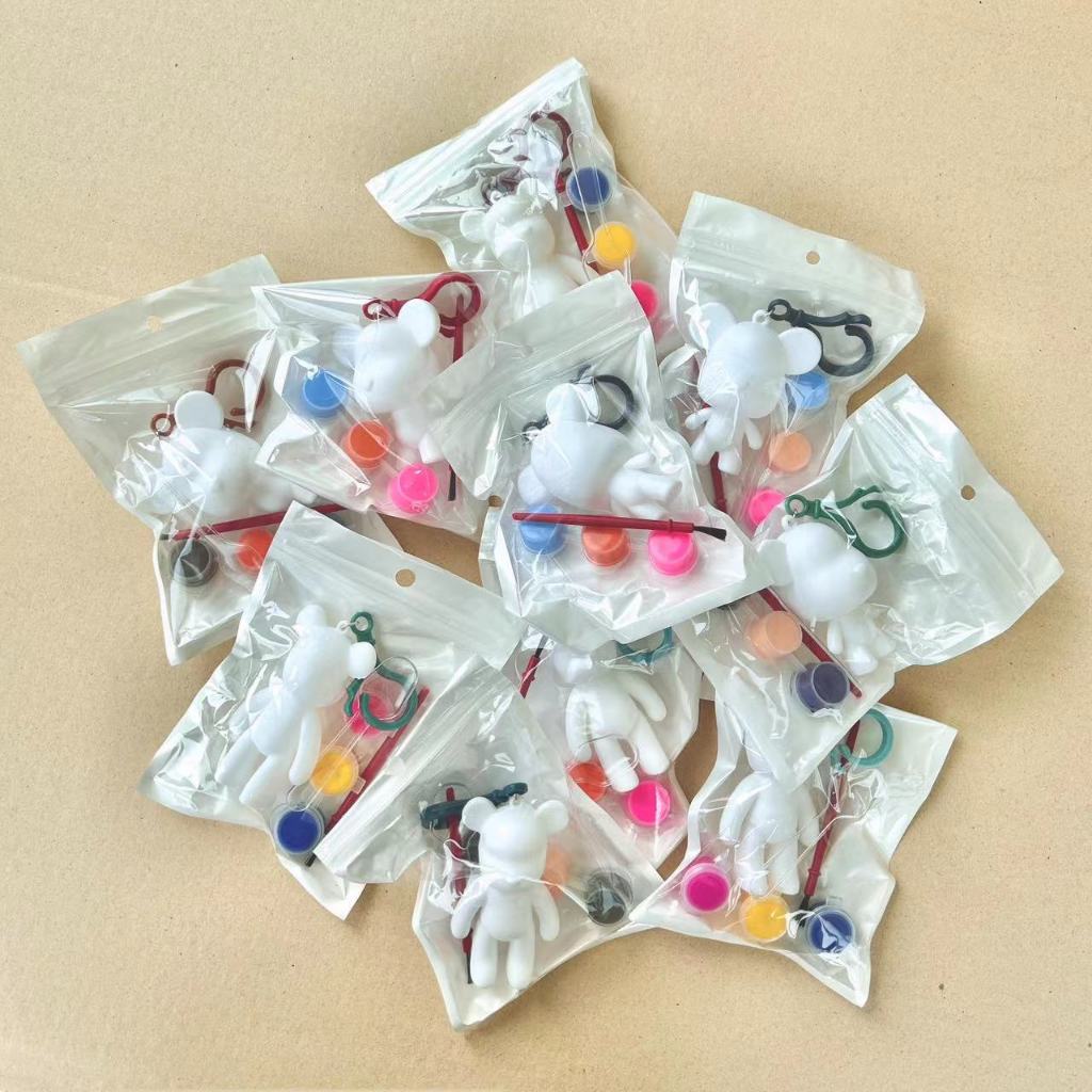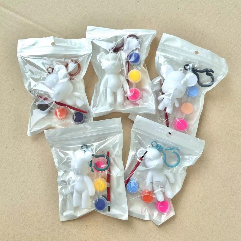 ชุดระบายสีพวงกุญแจรูปหมี พลาสติก พร้อมสีและพู่กัน จัดส่ง คละสี / คละไซส์ สำหรับฝึกความสามารถทางศิลปะ (Painting Doll)