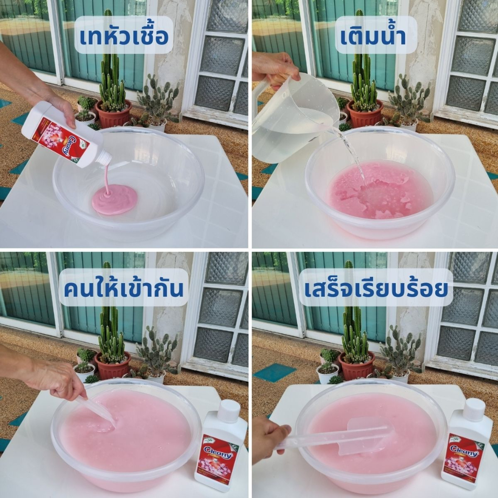 ... ข้มข้นพิเศษ ขนาด 100 มล. 📣 ผสมง่าย ละลายน้ำได้เร็ว 📣 ผสมน้ำเพิ่มได้ 6 เท่า (หัวเชื้อ 1 ส่วน ต่อ น้ำ 6 ส่วน) - ขนาด 100 มล. เติมน้ำเพิ่ม 600 มล. รวมเป็น 700 มล. 📌 อัตราส่วนการผสม เพิ่ม/ลด ได้ตามต้องการ 💧💧💧💧💧💧💧💧💧💧💧💧💧💧💧💧💧💧💧💧 Cleany💦 - หัวเชื้อน้ำยาปรับผ้านุ่ม สูตรเข้มข้นพิเศษ 💖 หอมยาวด้วยหัวน้ำหอมเกรดพรี่เมี่ยม 💖 ผ้านุ่มฟู คงรูปทรง ยับน้อยลง รีดง่าย 💖 คงสีสันสดใส 💖 ล้างออกง่าย ไม่ทิ้งคราบ 💧💧💧💧💧💧💧💧💧💧💧💧💧💧💧💧💧💧💧💧 Cleany💦 - วิธีผสม 1. เทหัวเชื้อน้ำยาปรับผ้านุ่ม สูตรเข้มข้นพิเศษ ขนาด 100 มล. 2. เติมน้ำเพิ่มอีก 600 มล. และ คนให้เข้ากันช้าๆ จะได้น้ำยาปรับผ้านุ่ม สูตรเข้มข้นพิเศษพร้อมใช้ 700 มล. 📌 แสกน QR code ด้านหลังขวด สำหรับวิธีการใช้และวิธีการผสมเพิ่มเติม 💧💧💧💧💧💧💧💧💧💧💧💧💧💧💧💧💧💧💧💧 Cleany💦 - หัวเชื้อผลิตภัณฑ์ทำความสะอาด ✅ ถูกกว่าน้ำยาในท้องตลาด 40-70% ✅ ผลิตจากโรงงานที่ได้รับมาตรฐาน ✅ ผลิตจากวัตถุดิบธรรมชาติ ไม่ทำลายสิ่งแวดล้อม ✅ เก็บได้นานกว่า 2 ปี 💯 คุ้มค่า ประหยัด สินค้าดีมีคุณภาพ 🚛 จัดส่งทั่วประเทศ
