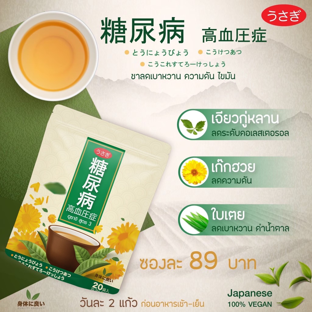 ลด เบาหวาน ความดัน ไขมัน น้ำตาล ในเลือดสูง ชาอุซางิ สูตรชาสมุนไพรสูตรต้นตำรับ นำเข้าจากญี่ปุ่น 🇯🇵