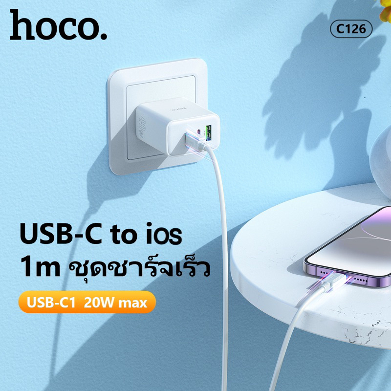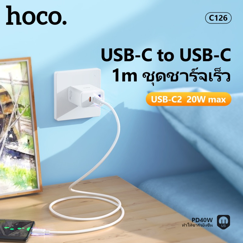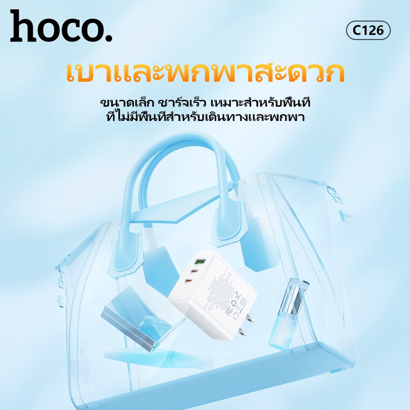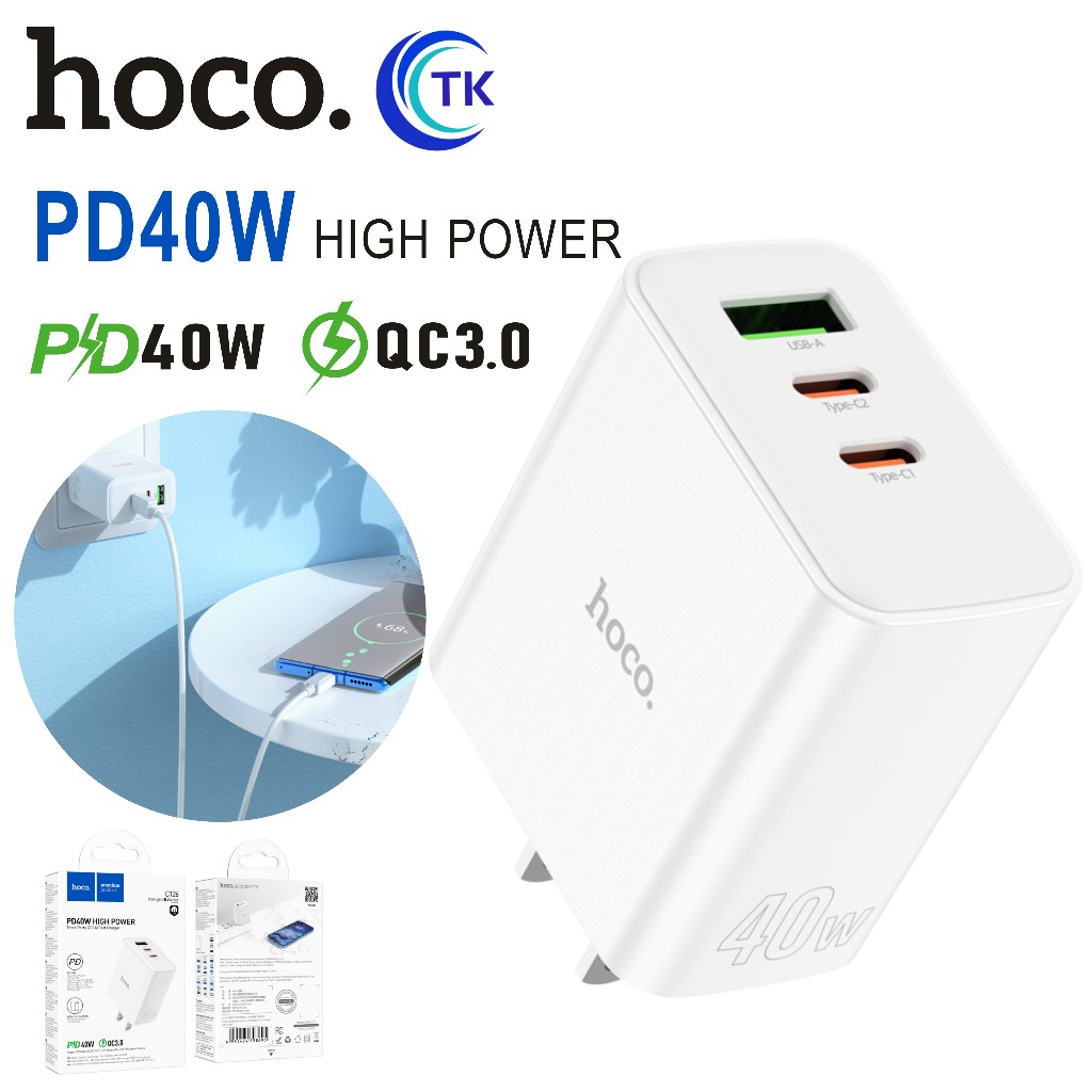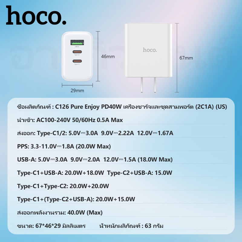 HOCO C126 อะแดปเตอร์ชาร์จโทรศัพท์มือถือ Fast charge PD40W QC3.0 USB และ Type C ปลั๊ก US แบบพกพา มีรับประกัน
