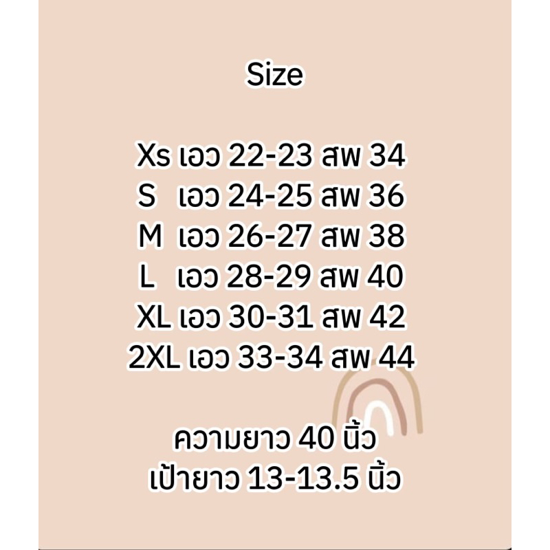 ... 5” สะโพก36” ต้นขา 22 M 26-27” สะโพก38” ต้นขา 23 L 28-29” สะโพก40” ต้นขา 24 XL 30-31” สะโพก42” ต้นขา 25 2XL 32-33" สะโพก44" ต้นขา 26 🔴ความยาว 41 🔴 🟢เป้ากางเกง 14 🟢 ❕สีอาจจะมีเพี้ยนจากของจริงนิดหน่อยนะคะ ❕งานทางร้านเป็นงานสั่งตัดเย็บ ไซด์ (+-) 0.5-1” นางแบบ เอว 25 สะโพก 35 สูง 165 📹 อัด VDO ก่อนแกะทุกครั้ง ‼ 📌กรณีสินค้ามีตำหนิ สามารถเคลมสินค้าได้ภายใน 3 วัน หลังจากวันที่รับของเท่านั้นค่ะ ❗️ไม่รับเปลี่ยน - คืนสินค้าทุกกรณี นอกจากสินค้ามีตำหนิส่งผิดไซส์เท่านั้น ❌เมื่อของไปถึง รบกวนถ่ายวีดีโอตอนแกะเก็บไว้เป็นหลักฐาน กรณีได้ของไม่ครบ ของหาย หรือ สินค้ามีตำหนิ สามารถแจ้งเปลี่ยนได้ ทางร้านขอสงวนสิทธิ์นี้ให้ลูกค้าที่มีรูปถ่าย และวิดีโอนะคะ❌