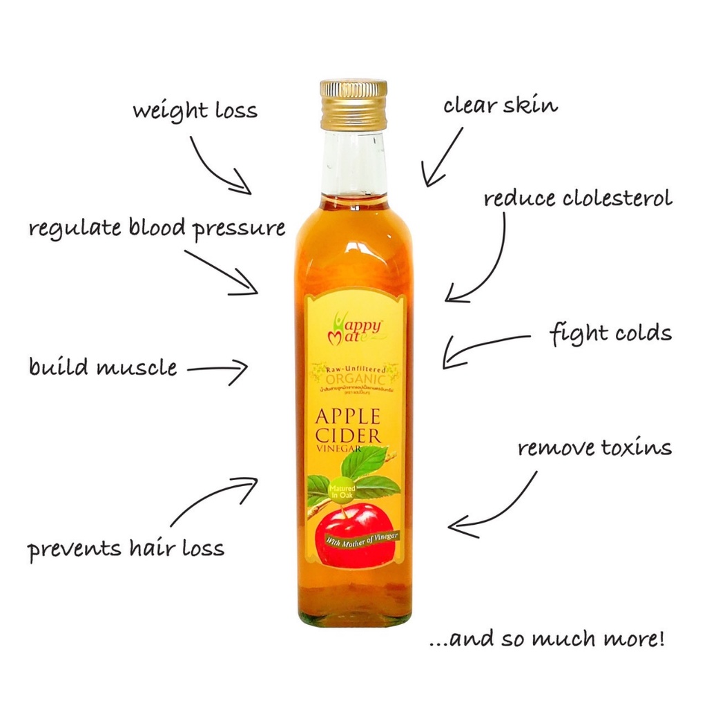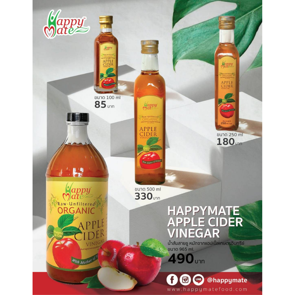 Apple Cider Vinegar with the mother ACV แอปเปิ้ลไซเดอร์ ออร์แกนิค HappyMate 💥คีโต💥 ทานได้