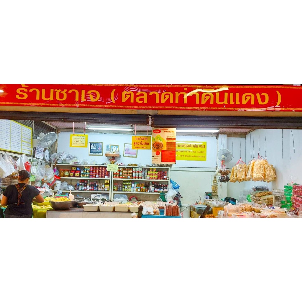 ร้านซาเจ เจ้าดังตลาดท่าดินแดง ของแท้ อร่อยที่สุด เปิดขายมากว่า 80 ปี รสชาติอร่อย สะอาด ปลอดภัย ไร้สารกันบูด เจทานได้ มังสวิรัติทานได้ หมูแดดเดียวเจ ทำจากโปรตีนข้าวสาลีนอก กรุบกรอบ รสชาติหวานอร่อย สามารถทานเป็นกับข้าวหรือว่าจะทานเป็นของทานเล่นเพลินๆก็ได้เช่นกัน อร่อยถูกใจ สินค้าขวัญใจเด็กๆ *ถ