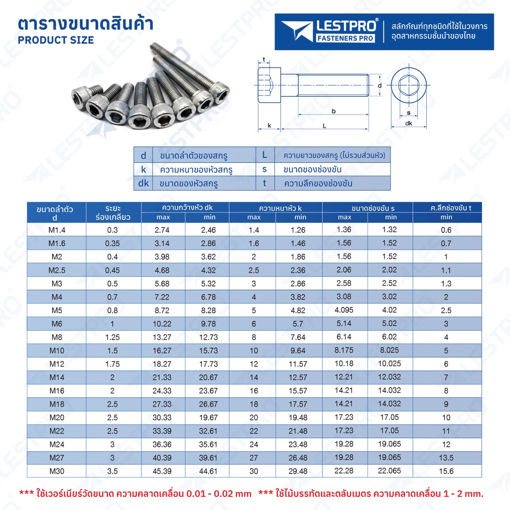 🚩 น็อต สกรู หัวจม สแตนเลส 304 เกลียวมิล ตลอด หยาบ M6 🚩 🚩 DIN912 Hex Socket Head Cap Machine Screw 🚩 🔍 รายละเอียดสินค้า 🔍 ⚙️ น็อตหัวจม ⚙️ สแตนเลส เกรด 304 ⚙️ ขนาดความโตของเกลียว M6 (mm) ⚙️ หน่วยของความยาว มิลลิเมตร (mm) 🔍 วิธีการดูขนาด ความโตของเกลียว (mm) x ความยาว (mm) 📋 ยกตัวอย่าง M