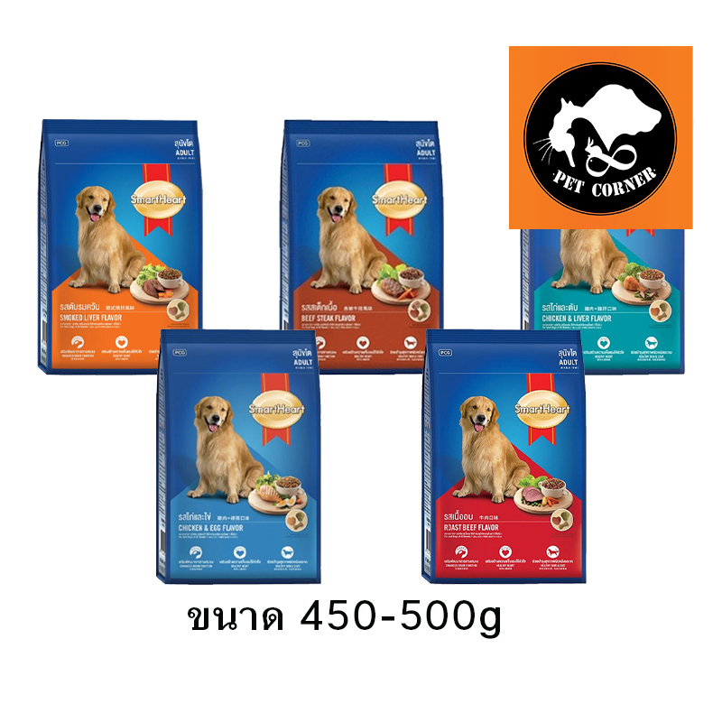อาหารสุนัข สมาร์ทฮาร์ท Smartheart ขนาด 450-500 g. โต-เนื้ออบ โต-ตับรมควัน โต-ไก่ไข่ โต-ไก่ตับ โต-สเต็กเนื้อ