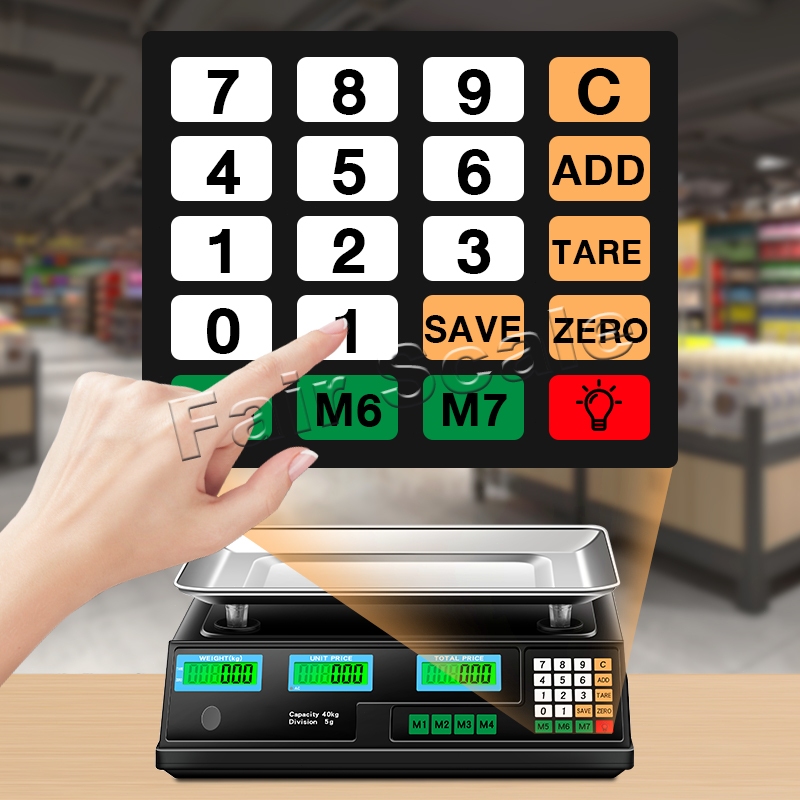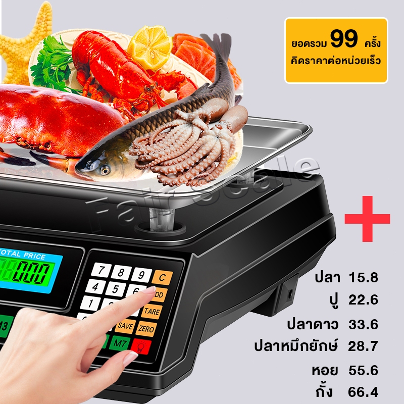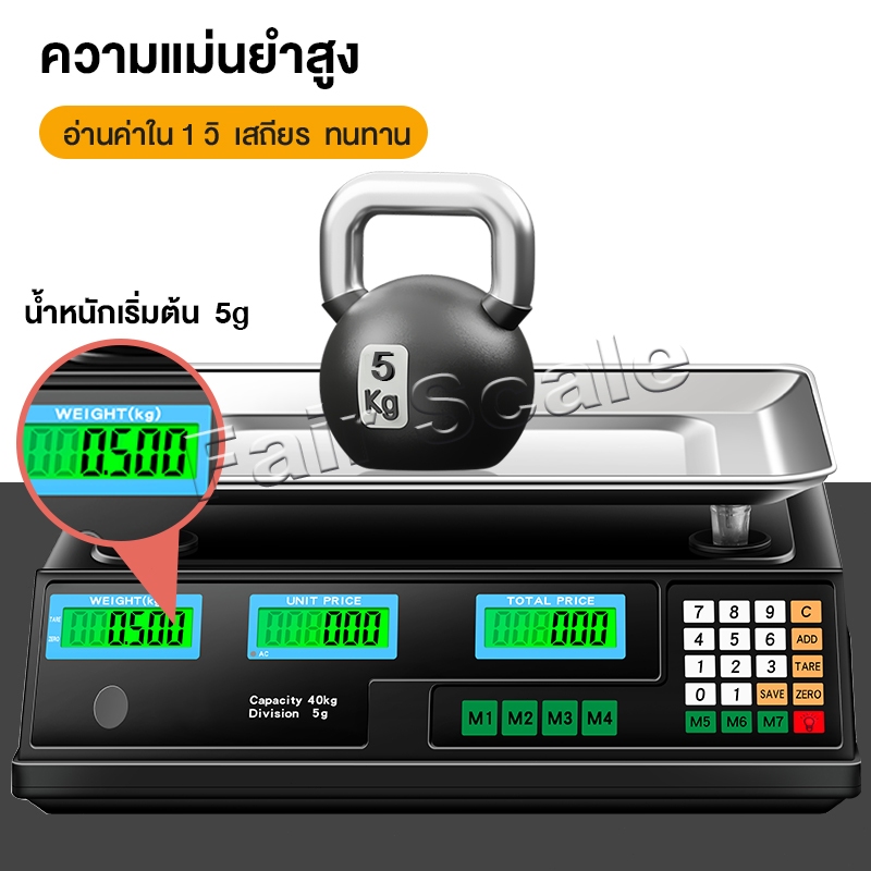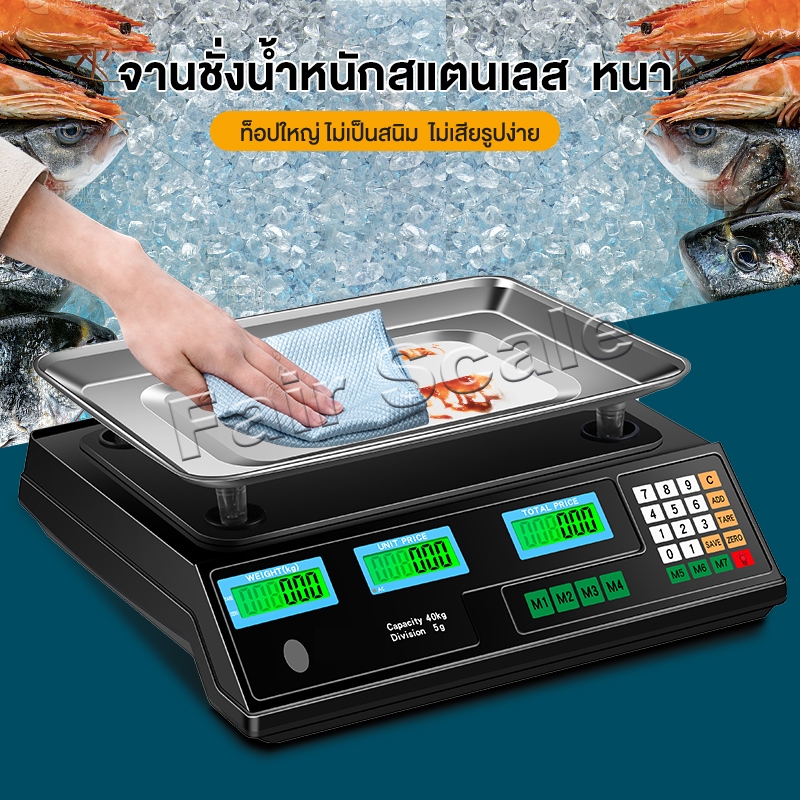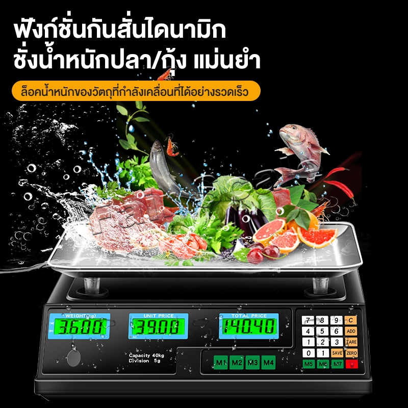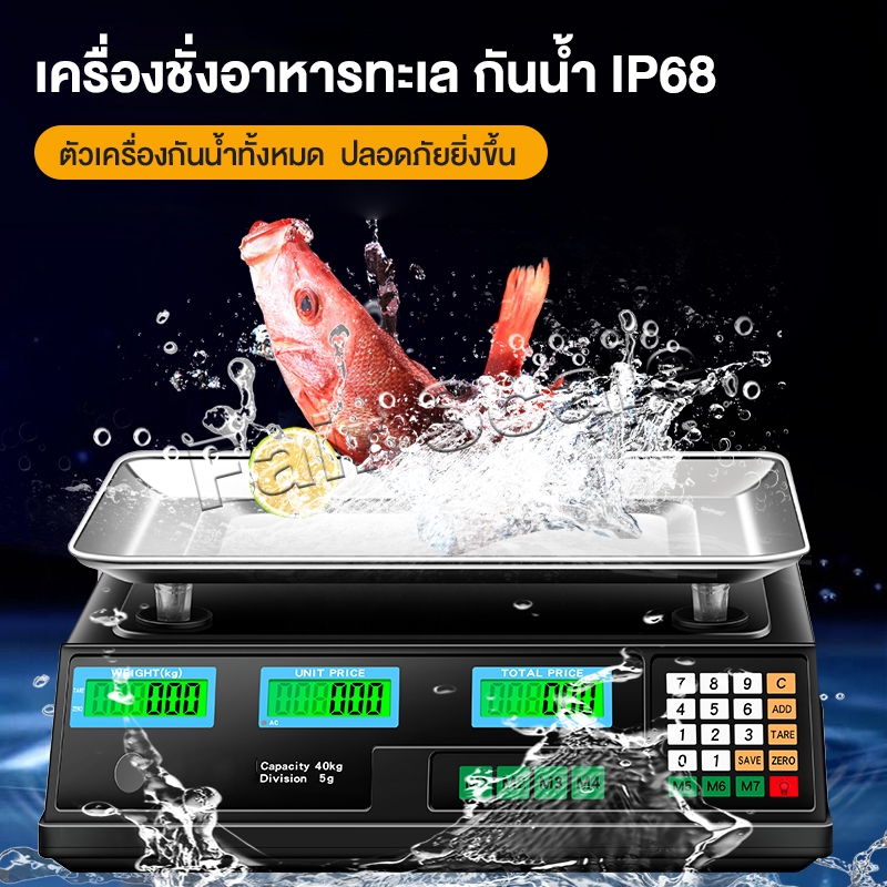 ตาชั่งดิจิตอล 40Kg คำนวนราคาได้ มีม.อ.ก. กันน้ำ แบบชาร์จแบต หน้าจอสองฝั่ง จำราคาได้ กิโลดิจิตอล