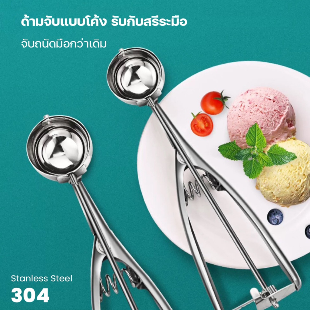 ที่ตักไอศกรีม สแตนเลสแท้ ไม่เป็นสนิม ด้ามจับโค้งรับกับมือ ปลอดภัย ทนทานใช้งานได้นาน