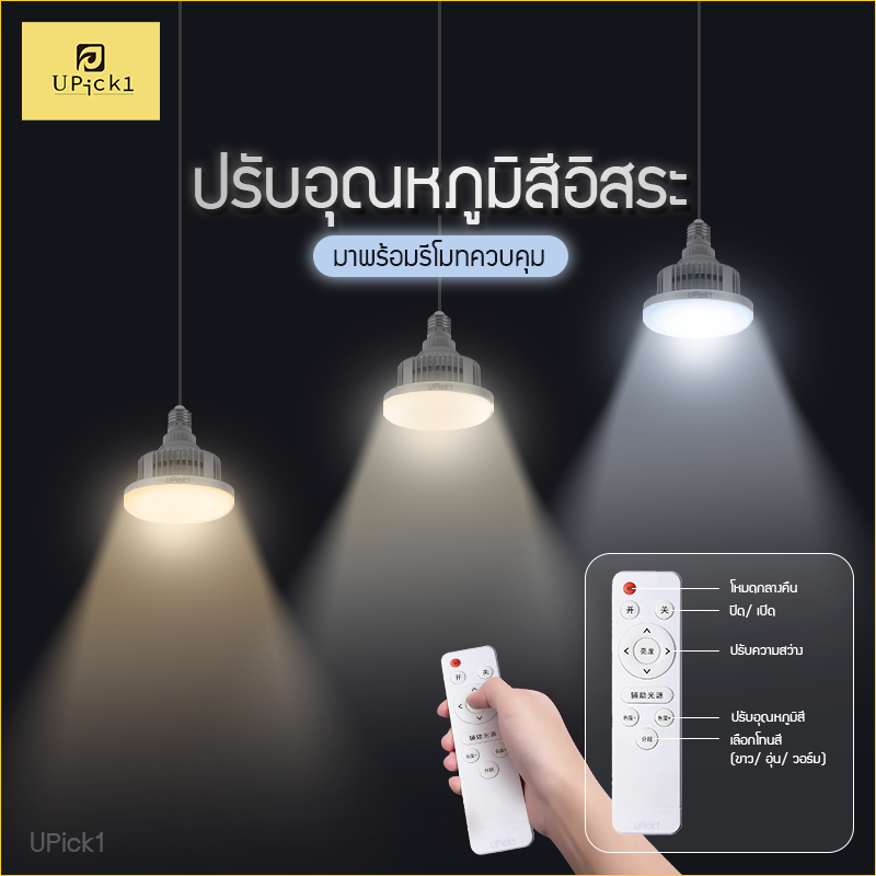 UPick1 ชุดไฟสตูดิโอ 70W 220V ขั้วหลอด E27 Dimmable LED Energy Saving Light Bulb ปรับได้ 3สี หลายระดับ สำหรับจัดสตูดิโอ