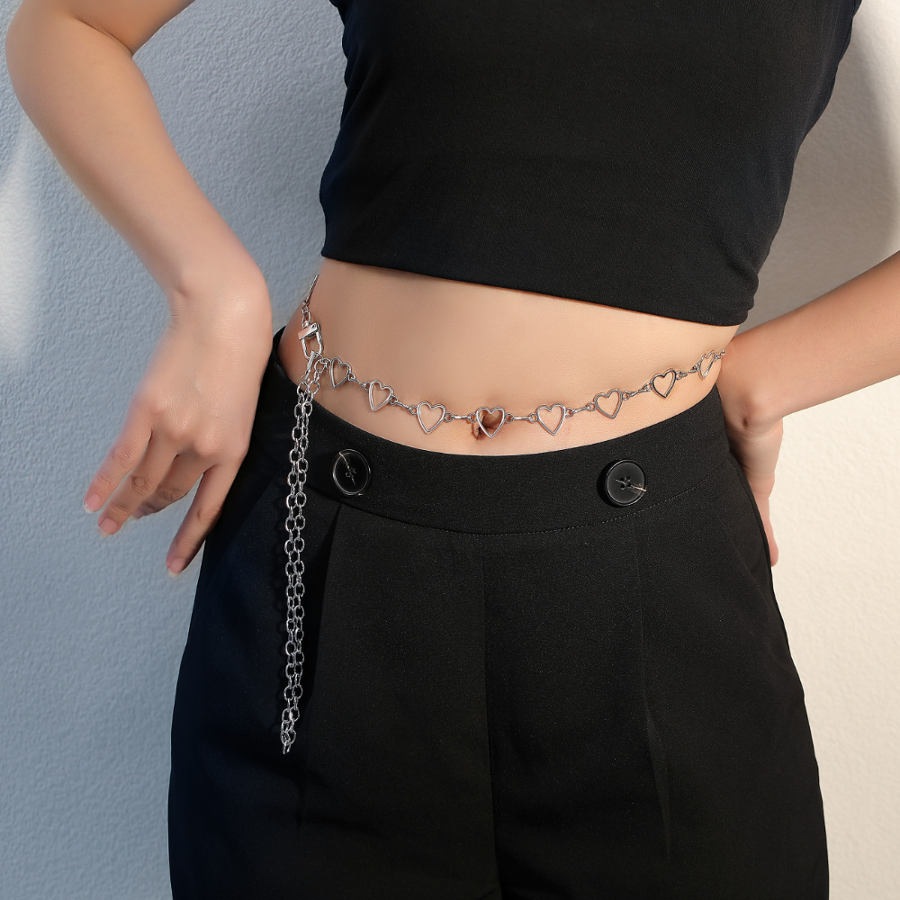 สายโซ่คาดเอว รูปหัวใจ เข้ากับทุกการแต่งกาย สไตล์ฮิปฮอป เครื่องประดับ สําหรับผู้หญิง