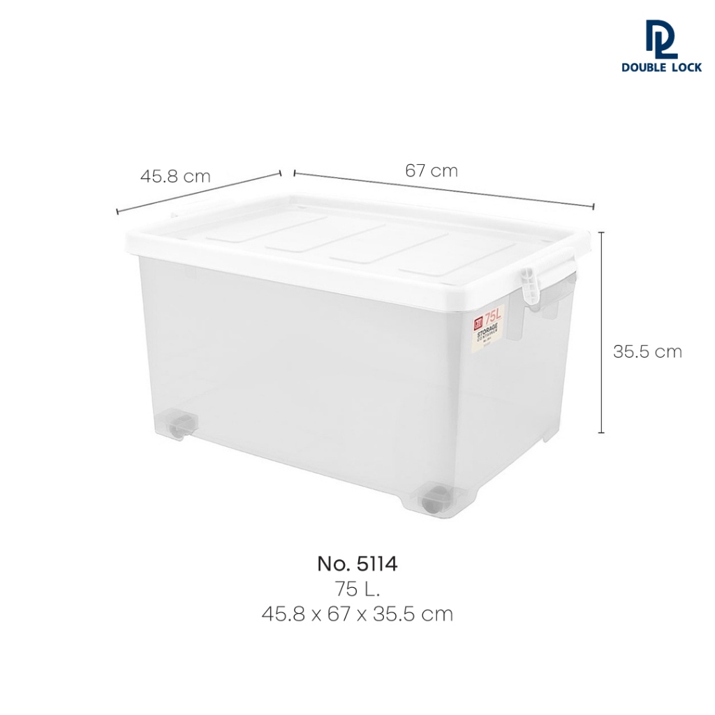 Double lock กล่องพลาสติกมีล้อ ฝาล็อก กล่องเก็บของ 75 ลิตร รุ่น 5114