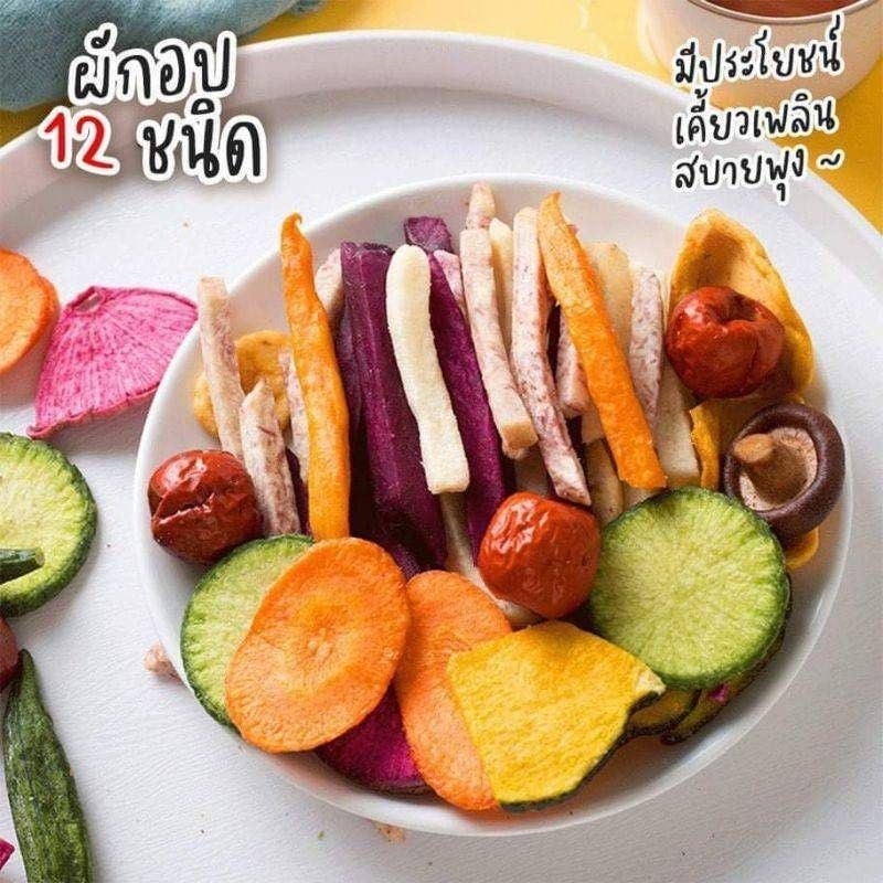 ... ลไม้รวมและผักรวม, แพ็ครวม ผักและผลไม้อบกรอบ 12 ชนิด ขนาด 250g อบแบบไม่ใช้น้ำมัน ผักอบกรอบ เพื่อคนรักสุภขาพ ผักกรอบ อร่อย ผักและผลไม้อบกรอบ สดไหม่ ผักอบกรอบรวมมิตร ประกอบด้วยผักและผลไม้12อย่าง 1. มันม่วง 2. แคร์รอต 3. พุทราจีน 4. เห็ดหอม 5. หัวไชเท้าแตงโม 6. มันเทศ 7. หัวไชเท้าจีน 8. มันฝรั่ง 9. ขนุน 10. กล้วยหอม 11. เผือก 12. กระเจี๊ยบ 🔥เรทส่งเป็นลัง ทักในอินบล้อกได้นะ ผักรุ่นกระเจี๊ยบ หมายถึงหน้าซองเป็นรูปกระเจี๊ยบ ย้ำคือผักรวม 12 ชนิด ไม่ใช่มีแต่กระเจี๊ยบ หมายเหตุ Package เสียหาย แตกหัก ทางร้านเคลม 50% เรื่อง รสชาติ ความกรอบ ทางร้านขออนุญาติไม่รับเคลมนะคะ เนื่องจากทางร้านนำเข้า จากโรงงานผู้ผลิต