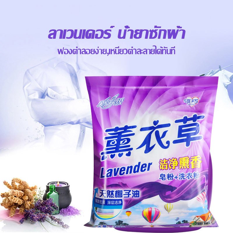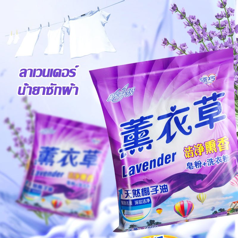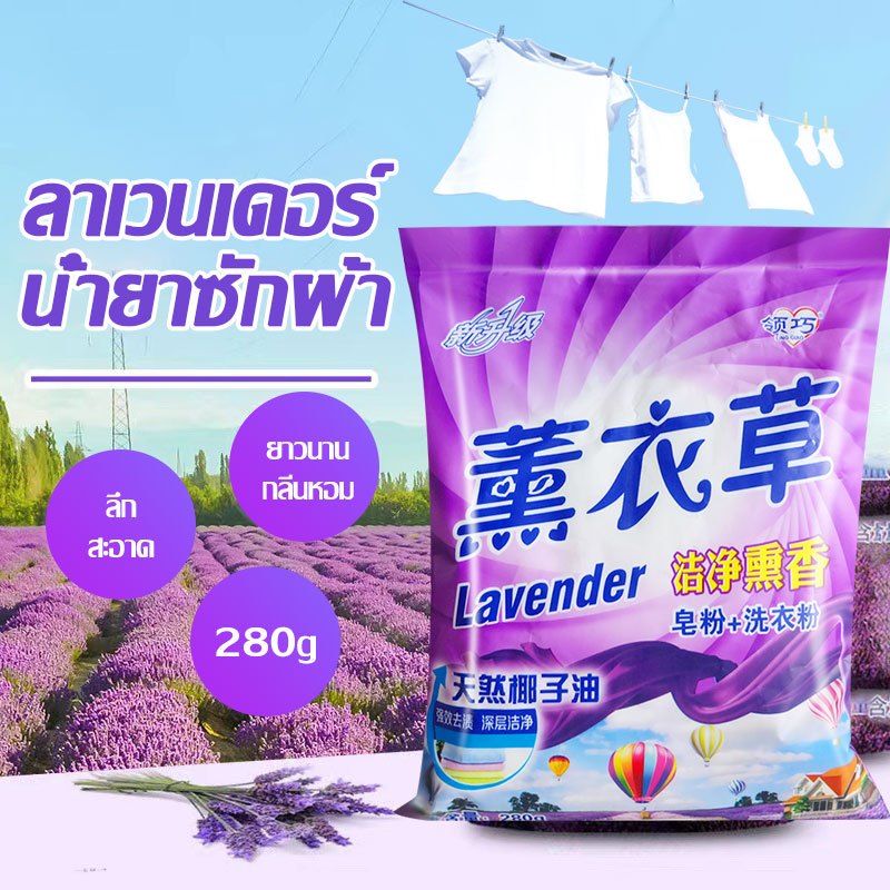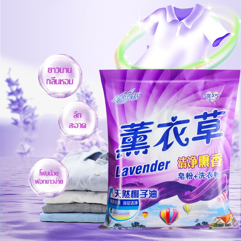 ผงซักฟอก ซักผ้า ขนาด 280g น้ำยาซักผ้า ผงซักฟอก ลาเวนเดอร์ กลิ่นดอกไม้สดชื่นขจัดคราบสกปรกทรงพลัง Powder Detergent-1410