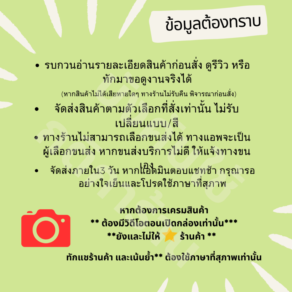 ... องอากาศ พิจารณาก่อนสั่ง --สั่งแล้วไม่รับคืน--- [พร้อมส่งจากกรุงเทพ] กล่องใส่กระดาษทิชชู่รูปโมอาย ที่ใส่ทิชชู่ โมเดลโมอาย โมอาย มีให้เลือก 3สี 1.สีดำ 2.สีขาว 3.สีเทา ขนาด สูง25cm กว้าง 16.5cm ยาว18cm วัสดุ -เรซิ่นผสมปูนปาสเตอร์ -งานพ่นสี -งานแฮนด์เมด -ไม่มีฝาปิด วิธีการใช้งาน -เทียบขนาดทิชชู่ก่อนใช้งานจริง -ใส่กระดาษทิชชู่ใต้โมอาย -ใช้ตั้งโชว์เพื่อความสวยงาม -เป็นของขวัญสุดพิเศษ -ใช้ตกแต่งบ้าน -ใส่ได้เฉพาะทิชชู่ขนาดเล็กเท่านั้น หรือ ม้วนเล็ก หรือวัดขนาดก่อนใช้งาน** 📦 กรณีรับเคลมสินค้า 1. สินค้าแตกร้าว (ต้องมีวิดีโอขณะเปิดกล่องเท่านั้น) 2.สินค้าที่ได้รับไม่ครบจำนวน (ส่งรูปสินค้าที่ิอยู่ในกล่องให้แอดมินตรวจสอบก่อนนะคะ) 3.สินค้าผิดแบบผิดสีหรือไม่ตรงตามที่สั่ง (ส่งรูปสินค้าที่ิอยู่ในกล่องให้แอดมินตรวจสอบก่อนนะคะ) *** กรณีไม่ได้รับสินค้า ขนส่งช้า ส่งผิดบ้าน ไม่ส่งของ ลูกค้าต้องติดต่อกับทางขนส่งเอง และกรุณาเช็คชื่อ ที่อยู่ เบอร์ให้เรียบร้อย **** 🚚 ส่งสินค้า จันทร์-เสาร์ ร้านหยุด วันอาทิตย์ หากลูกค้ามีคำสั่งซื้อในวันเสาร์ จะถูกจัดส่งวันจันทร์ ทางร้านตัดรอบบิล19:00pm หากสั่งหลังจากนี้จะถูกส่งในวันถัดไป 🛑เช่น สั่งวันจันทร์ 19:01 จะถูกจัดส่งอีกทีในวันพุธ 🛑 **กรณีสินค้าจัดโปรโมชั่นลดราคา หรือช่วงเทศกาลเช่น11.11 ทางร้านจะจัดส่งช้า 5-7 วัน 📲 แอดมินตอบแชทช้า ลูกค้าที่ทักเข้ามาแล้ว กรุณารออย่างใจเย็นนะคะ