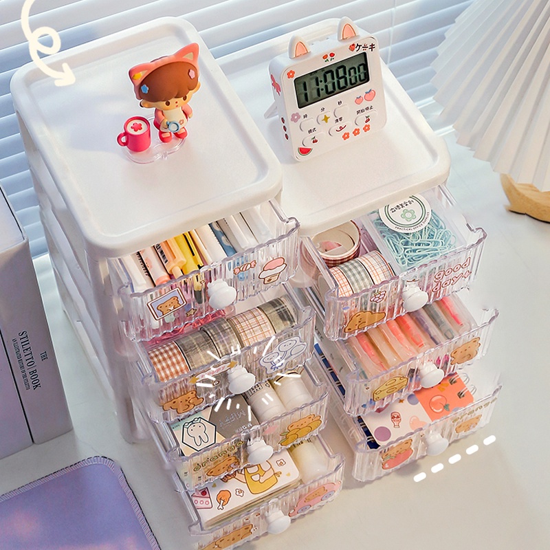 กล่องเก็บเครื่องเขียน ที่ใส่ปากกาลิ้นชักนักเรียน ชั้นวางตั้งโต๊ะ กล่องเก็บของน่ารัก กล่องเก็บของ กล่องเก็บของตั้งโต๊ะ
