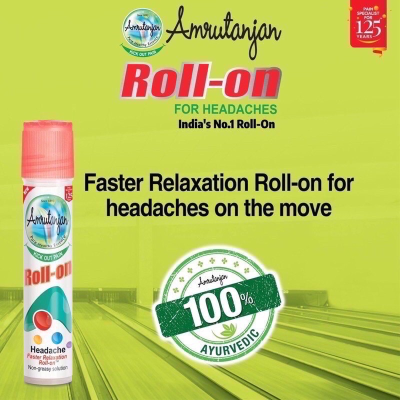 โรลออน ลูกกลิ้ง ปวดไมเกรน ปวด หัว เวียนศรีษะ Amrutanjan Headache Faster Relaxation Roll-On ของดีอินเดีย 10ml