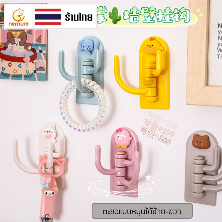 (F-123) ที่แขวนอเนกประสงค์ ที่แขวนแบบกระบองเพชร ที่แขวนติดผนัง หมุนได้ 180 องศา ลายการ์ตูนน่ารัก