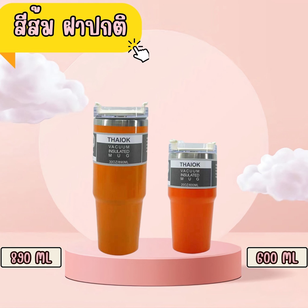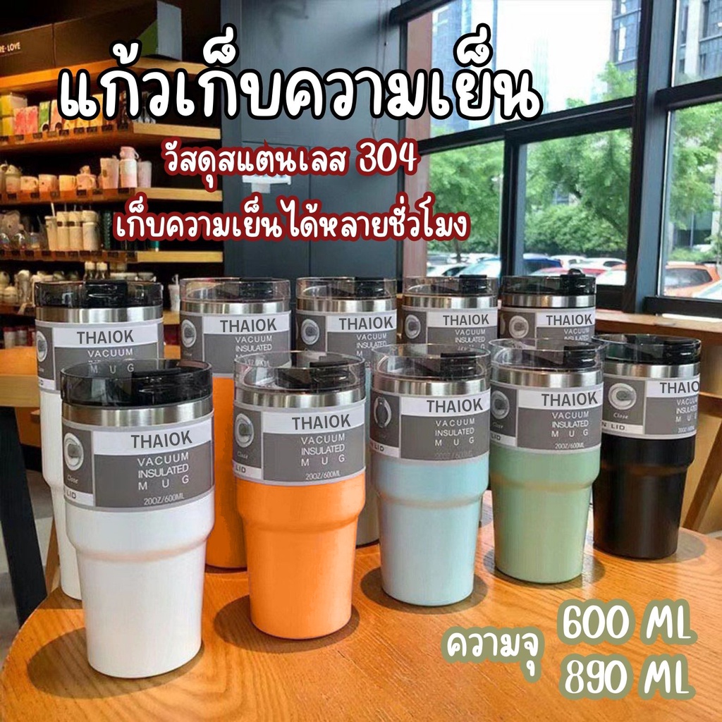 แก้วเก็บความเย็น สเตนเลสแท้ ขนาด 600 มล.และ 890 มล. แบบฝาปกติและฝามีหูหิ้ว แถมหลอด มีหลายสี
