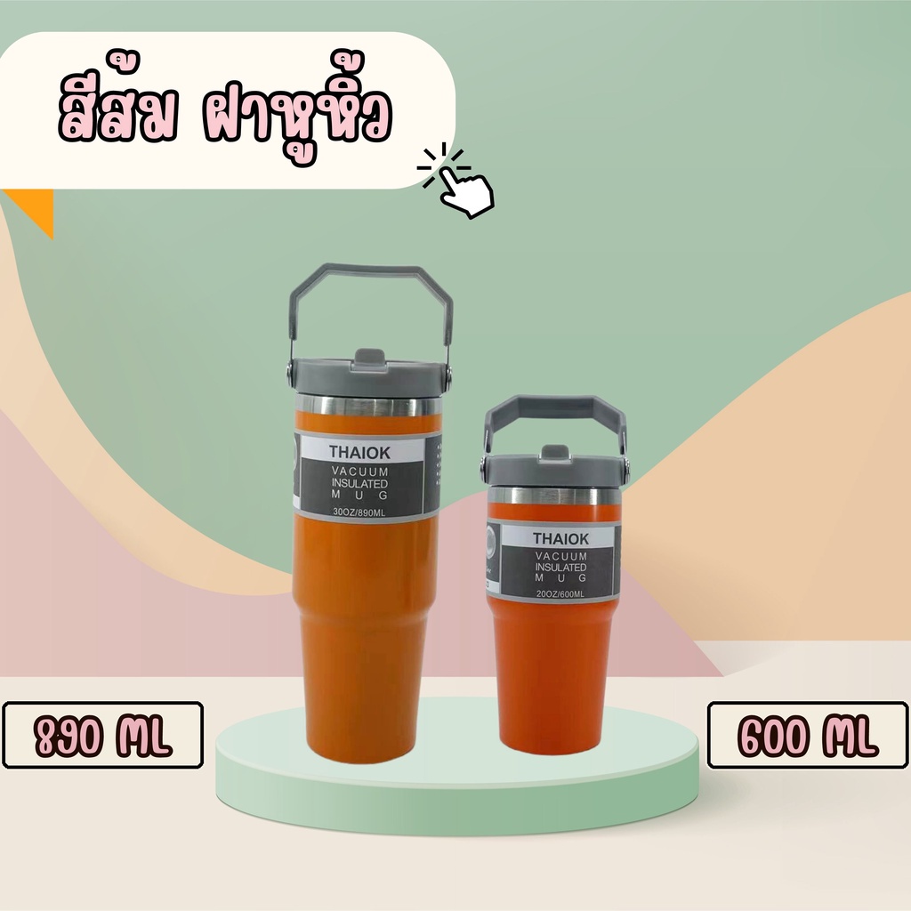แก้วน้ำเก็บความเย็น - สเตนเลส เกรด 304 - มี 2 ขนาด 600 มล. และ 890 มล. - ฝา 2 แบบ แบบปกติและแบบมีหูหิ้ว - มีหลอด - ฝาแบบหมุน ไม่หลุดออกง่าย - มีสีน้ำเงิน เขียว ดำ ส้ม และฟ้า (สีใหม่) 💥กรณีสินค้าชำรุด แตก หัก เสียหาย ไม่ครบ ผิดสี ผิดขนาด - ต้องถ่ายคลิปวีดีโอ ตั้งแต่เปิดกล่องพัสดุที่ได้มาเท