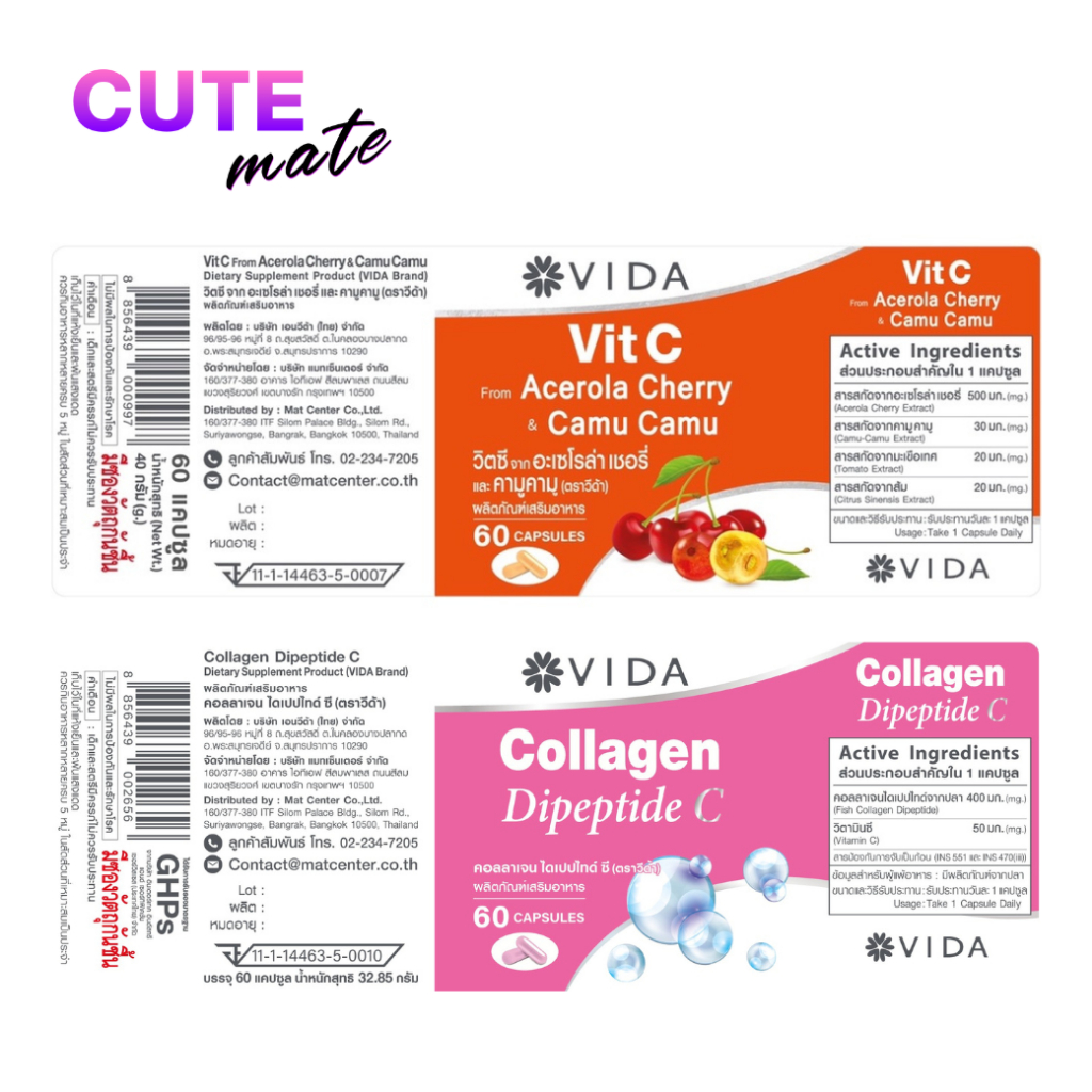 [10.15] Vida Vit C Acerola Cherry&Camu-Cam] วีด้า วิตซี คามูคามู Vida Collagen DipeptideC วีด้า คอลลาเจน
