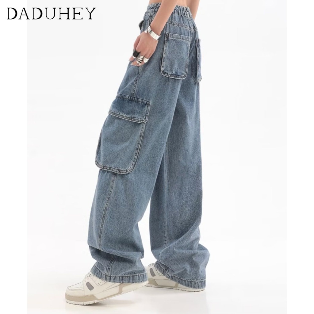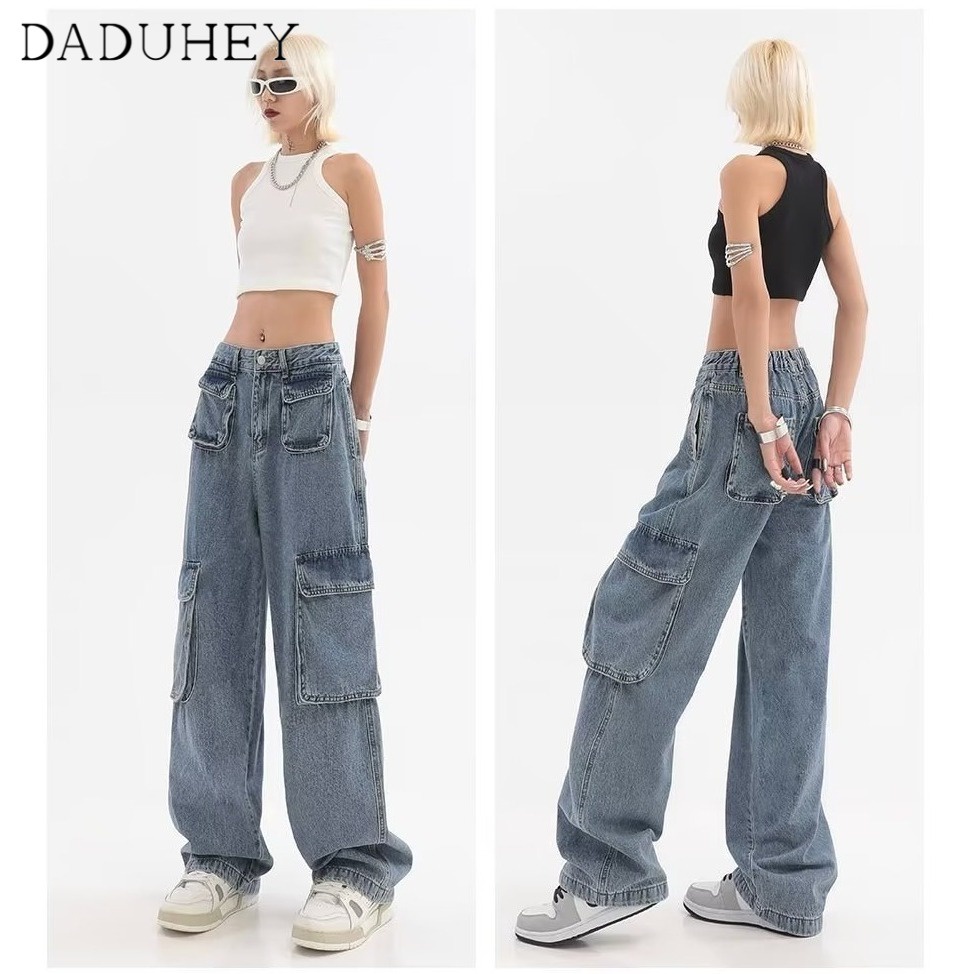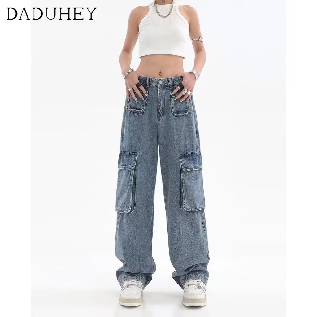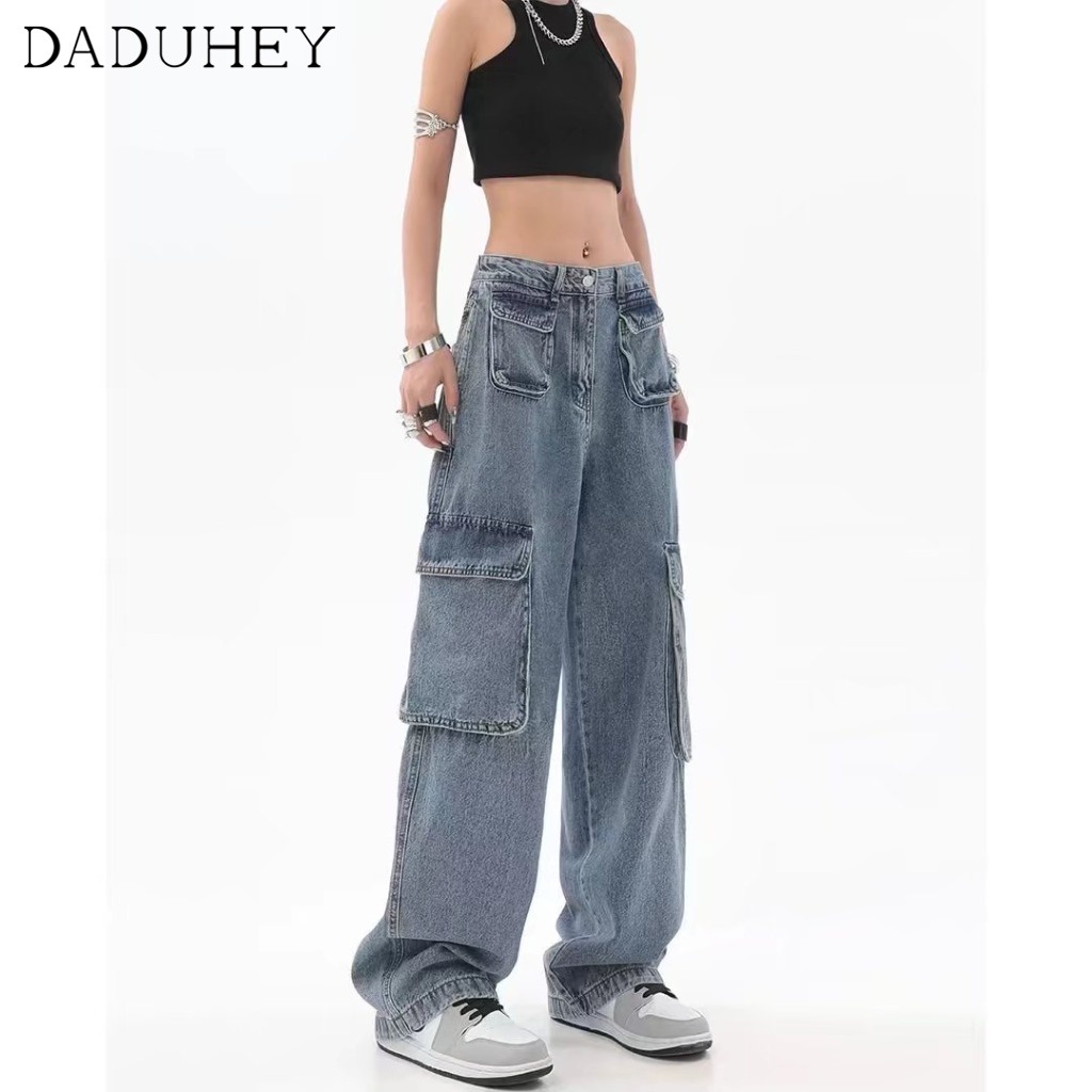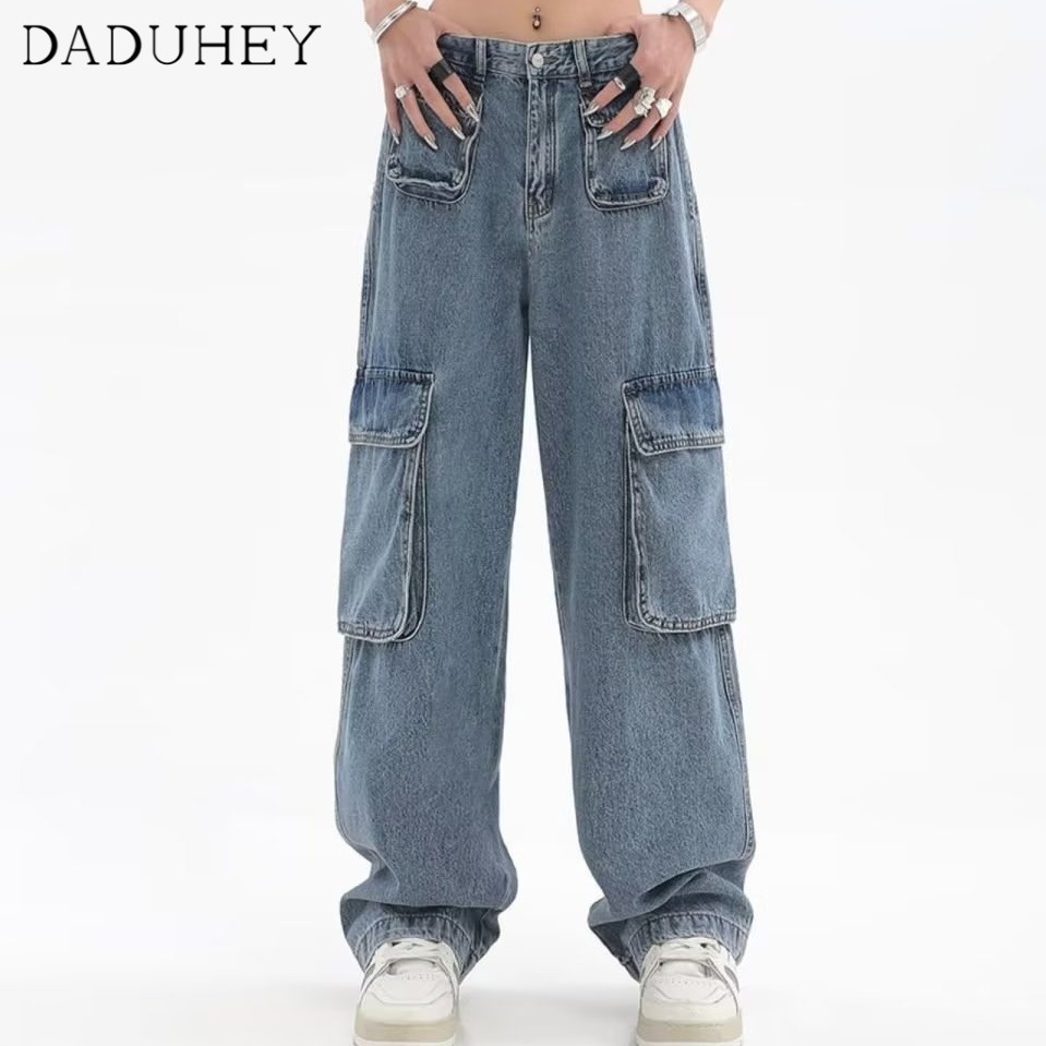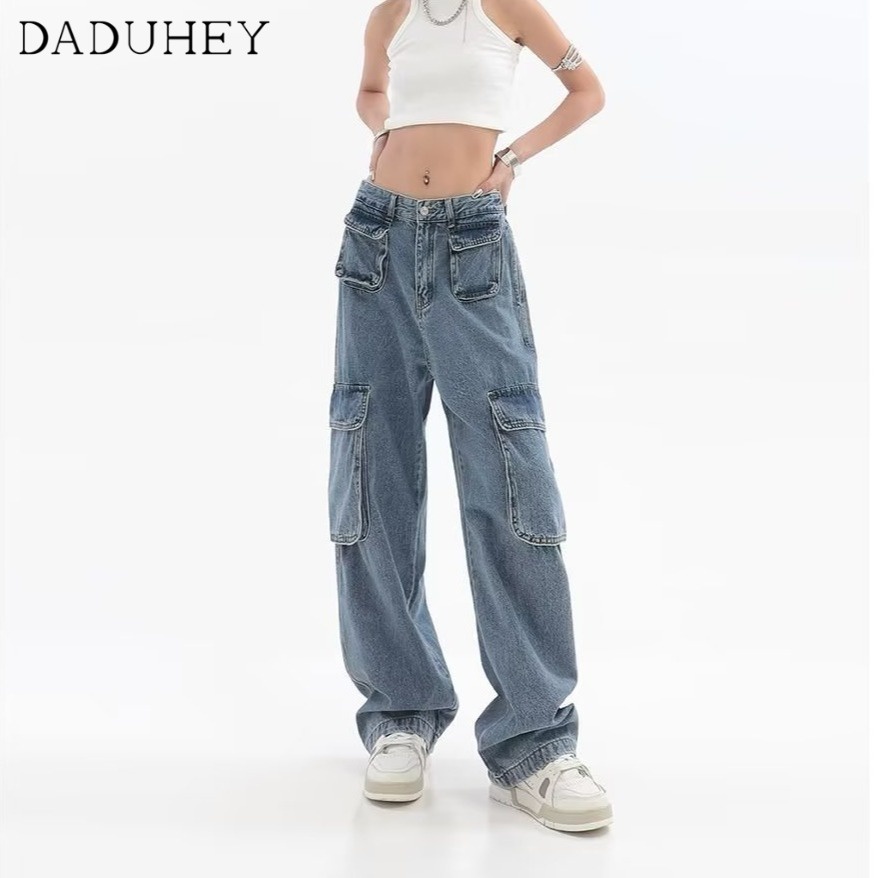DaDuHey💕 Women's Summer-Style Retro Design Multi-Pocket Jeans High Street Niche Straight Wide Leg Loose Cargo Pants
