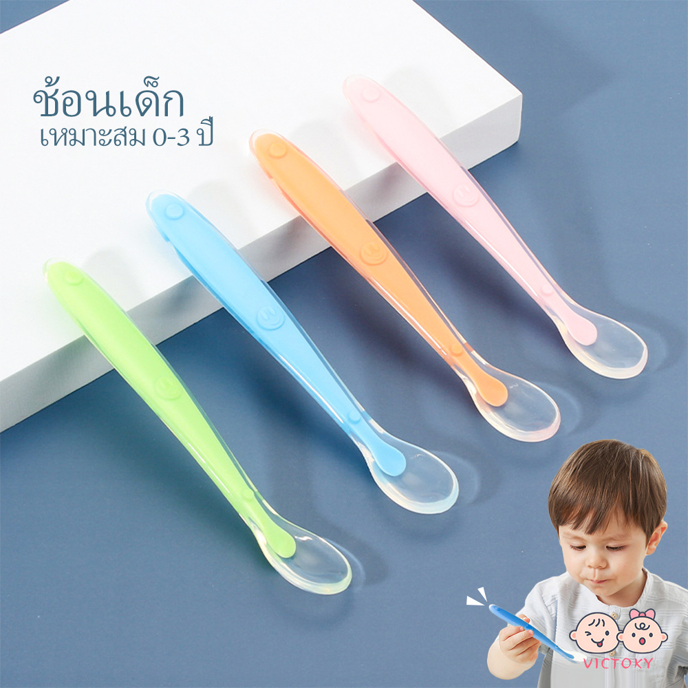 VICTOKY ช้อน ช้อนป้อนอาหาร ช้อนเด็ก (Ab28) ช้อนซิลิโคนปลายนิ่ม ช้อนเด็ก