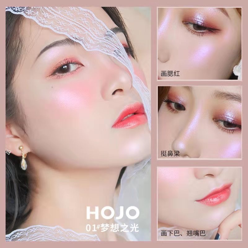 HOJO ไฮไลท์หน้าเงา หน้าฉ่ำ ผิวโกลว์ หน้าเรียว มีมิติ เม็ดสีแน่น ติดทนนาน โฮโจไฮไลท์พาวเดอร์ หน้าฉ่ำวาว เนื้อดี เนื้อแน่น เนื้อเนียนละเอียดเม็ดสีสวยชัดให้สัมผัสที่นุ่มละมุน เมื่อสาวๆได้ปัดแล้วทำให้รู้สึกได้ถึงความละมุน เรียบเนียนไปกับผิว และตัวเนื้อผสมชิมเมอร์เนื้อละเอียด ให้ความวาว ระยิบวิ้งๆ เ