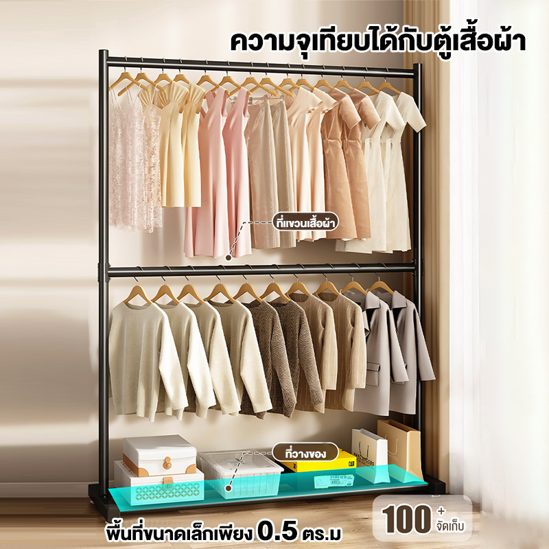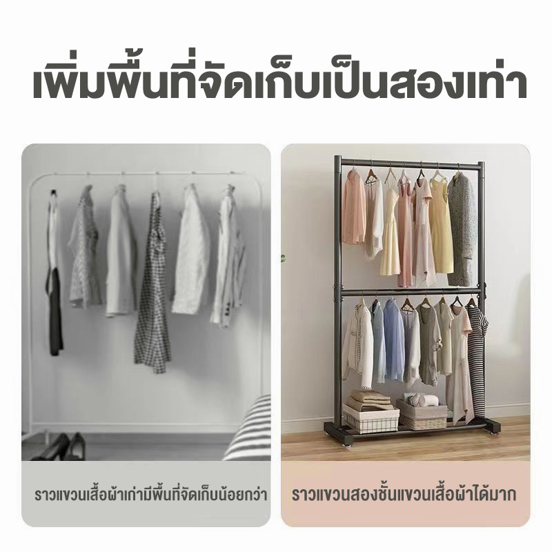 ราว 2 ชั้น 150CM ราวตากผ้า ราวแขวนเสื้อผ้า ราวแขวนผ้า โครงเหล็ก ราวแขวน ตากผ้าคอนโด มินิมอล เเขวนได้ 55 ตัว+พร้อมส่ง