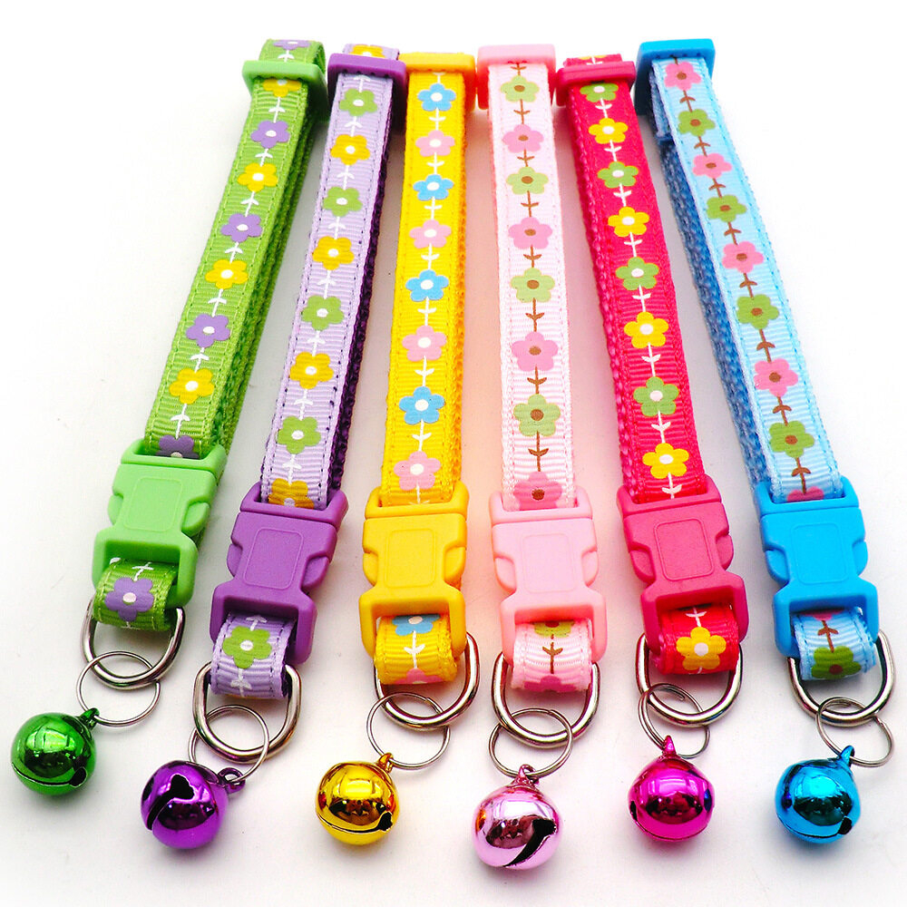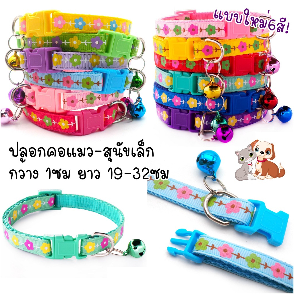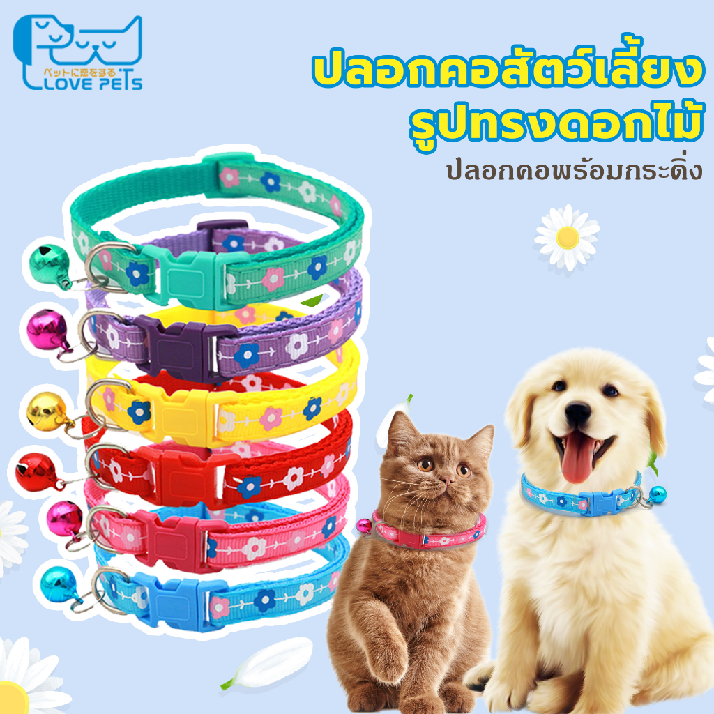 ปลอกคอแมว ปลอกคอหมา ปลอกคอสัตว์เลี้ยง ปลอกคอกระดิ่ง 6 สี รูปทรงดอกไม้ กระดิ่งแมว อกคอแมว แบบปรับขนาดได้ ดีไซน์หรูหรา น่า